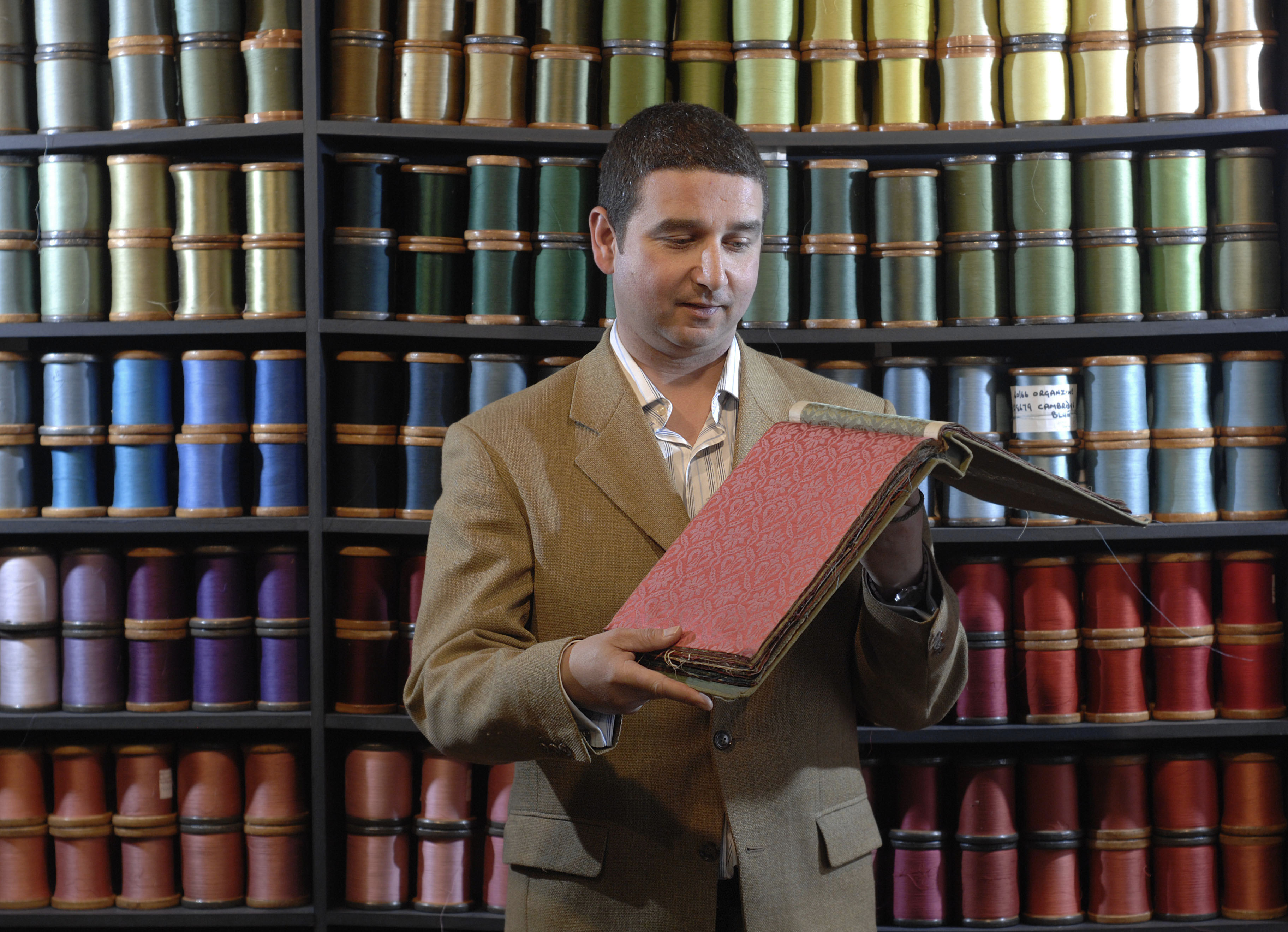 Pic by Si Barber - 07739 472 922 Neil Thomas of Gainsborough Silk Weavers in the samples room of his factory at Sudbury, Suffolk. Ordered by Katie Litchfield. 220307