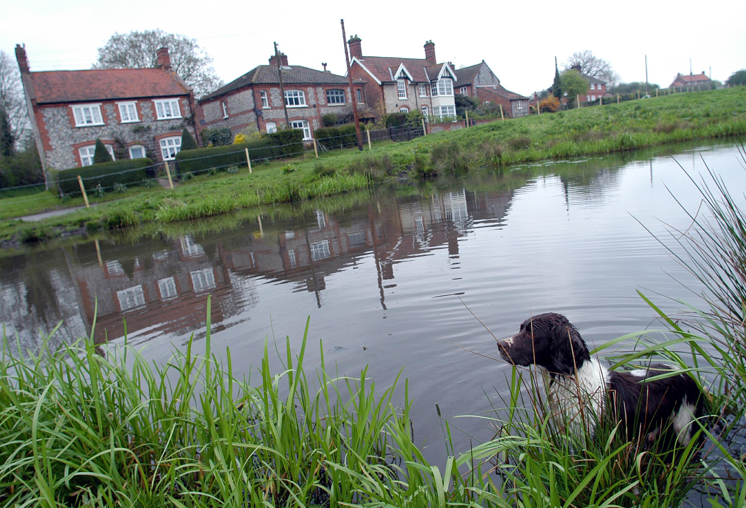 Pic shows Tilly, the springer spaniel in the duckpond on the green.