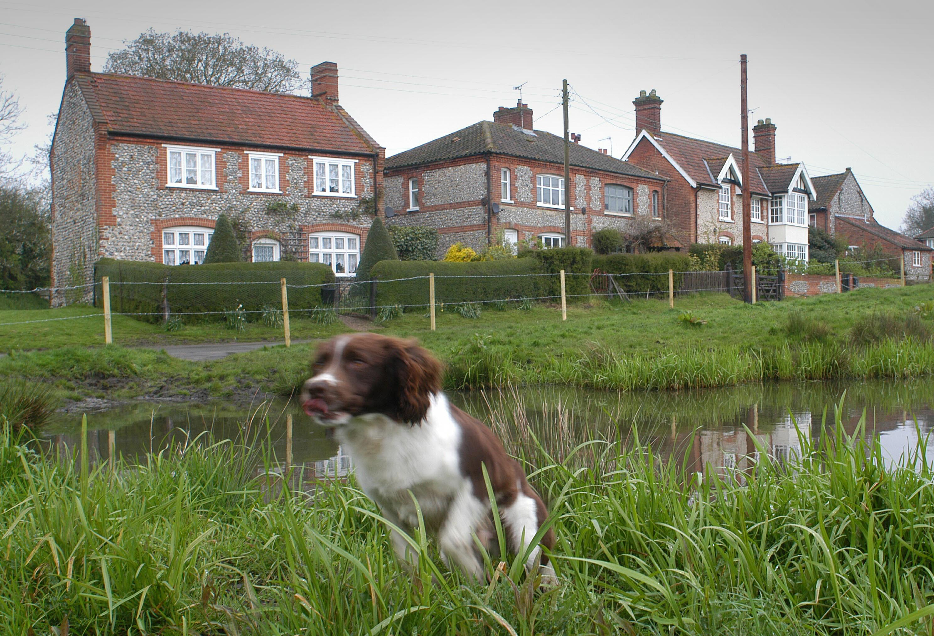 Pic shows Tilly, the springer spaniel in the duckpond on the green.