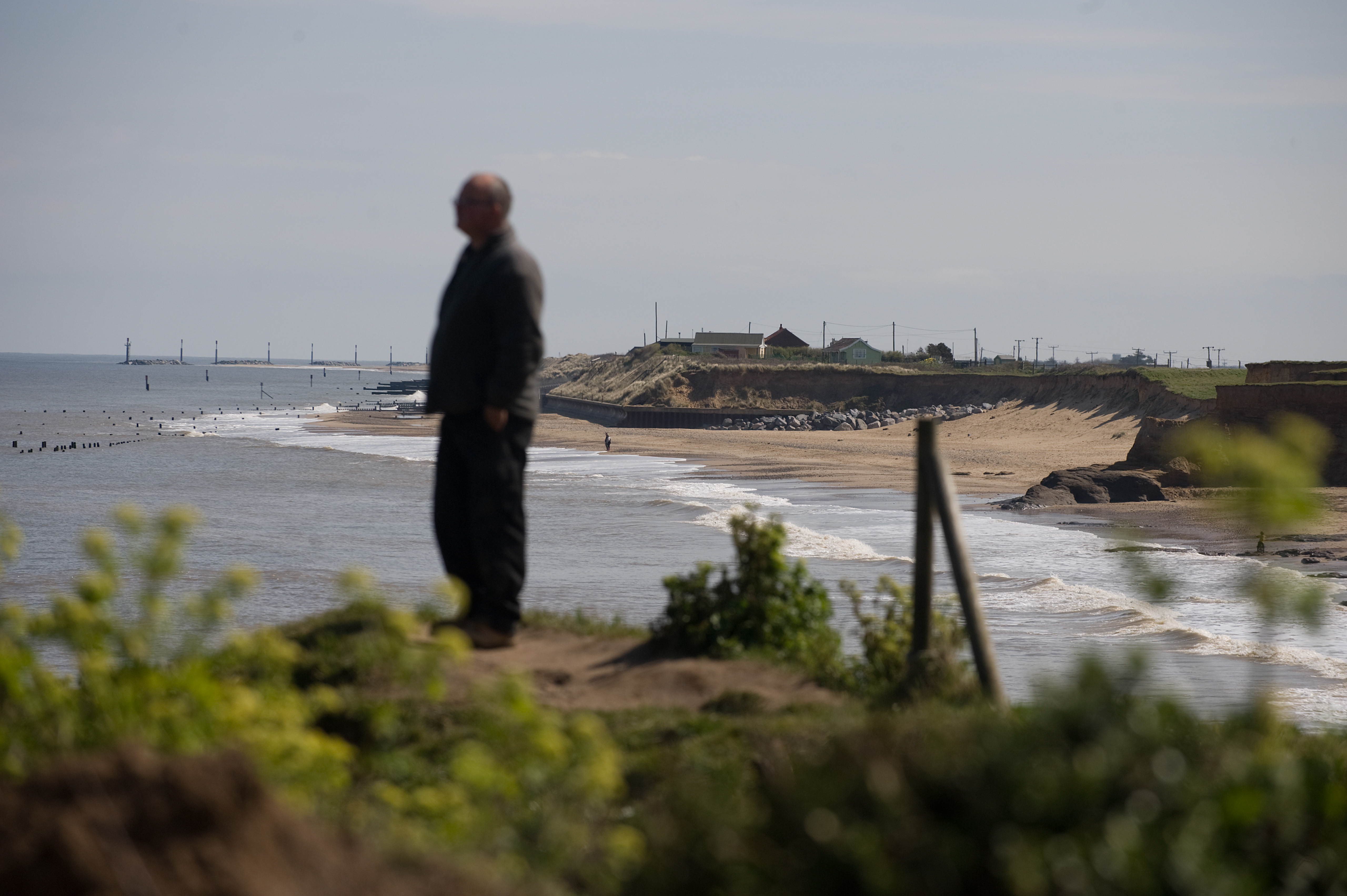 Nigel Cutting who lives in a caravan on the cliff edge in Happisburgh, Norfolk