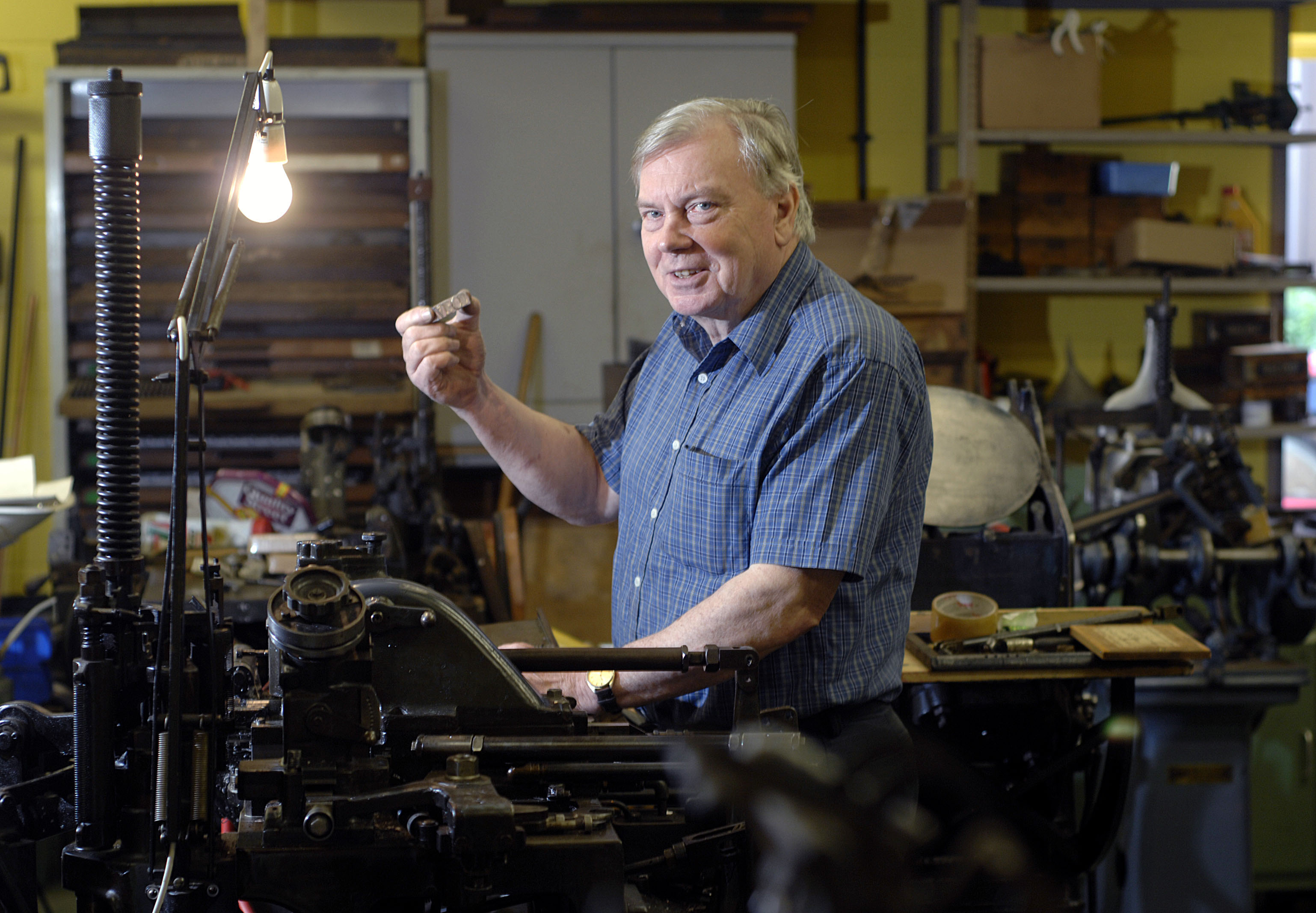 Pic by Si Barber - 07739 472 922 Traditional printer Brian Hubbard with 'hot metal' lead type, North Walsham, Norfolk.Ordered by Rebecca 171006