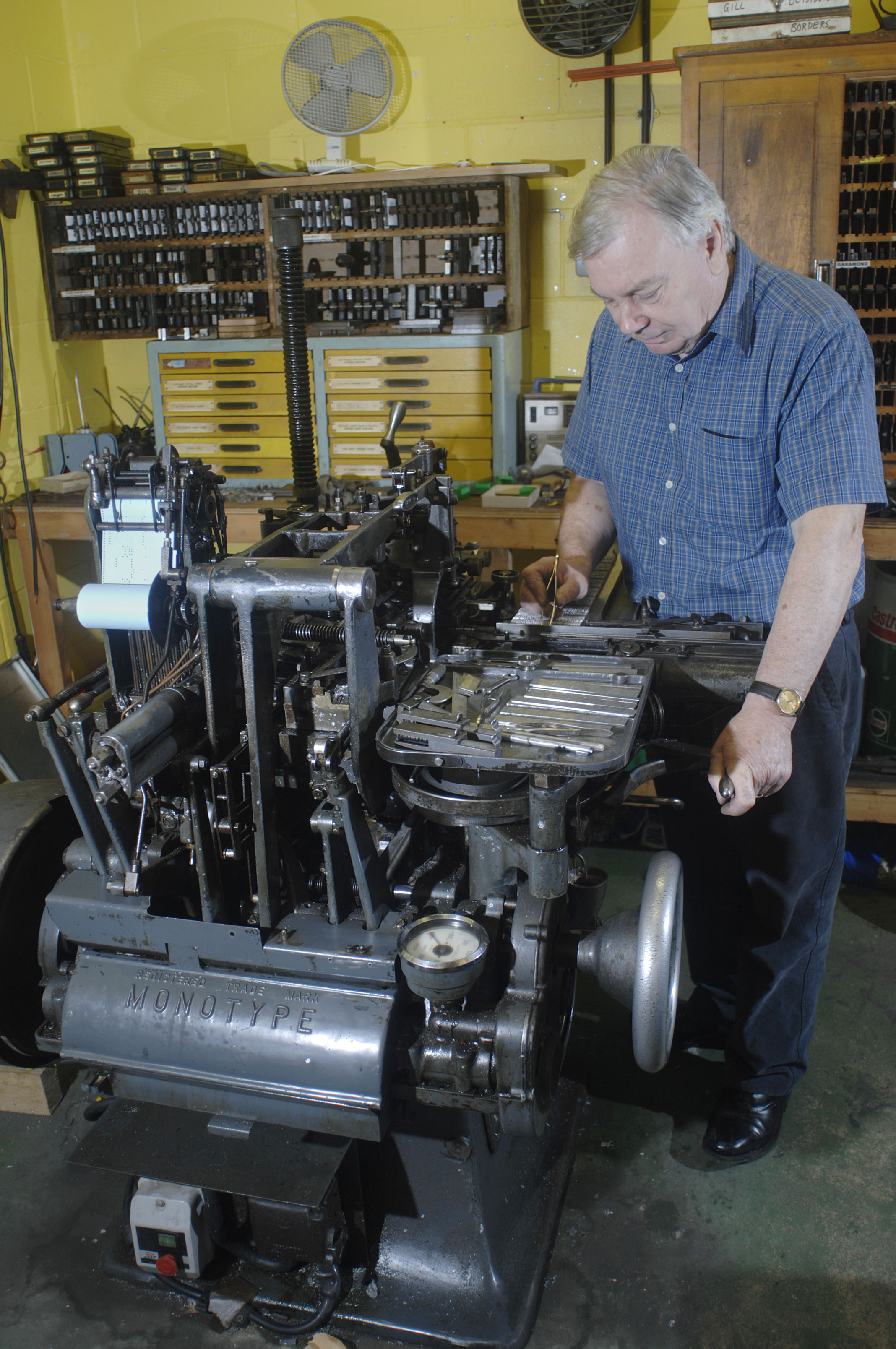 Pic by Si Barber - 07739 472 922 Traditional printer Brian Hubbard with 'hot metal' lead type, North Walsham, Norfolk.Ordered by Rebecca 171006