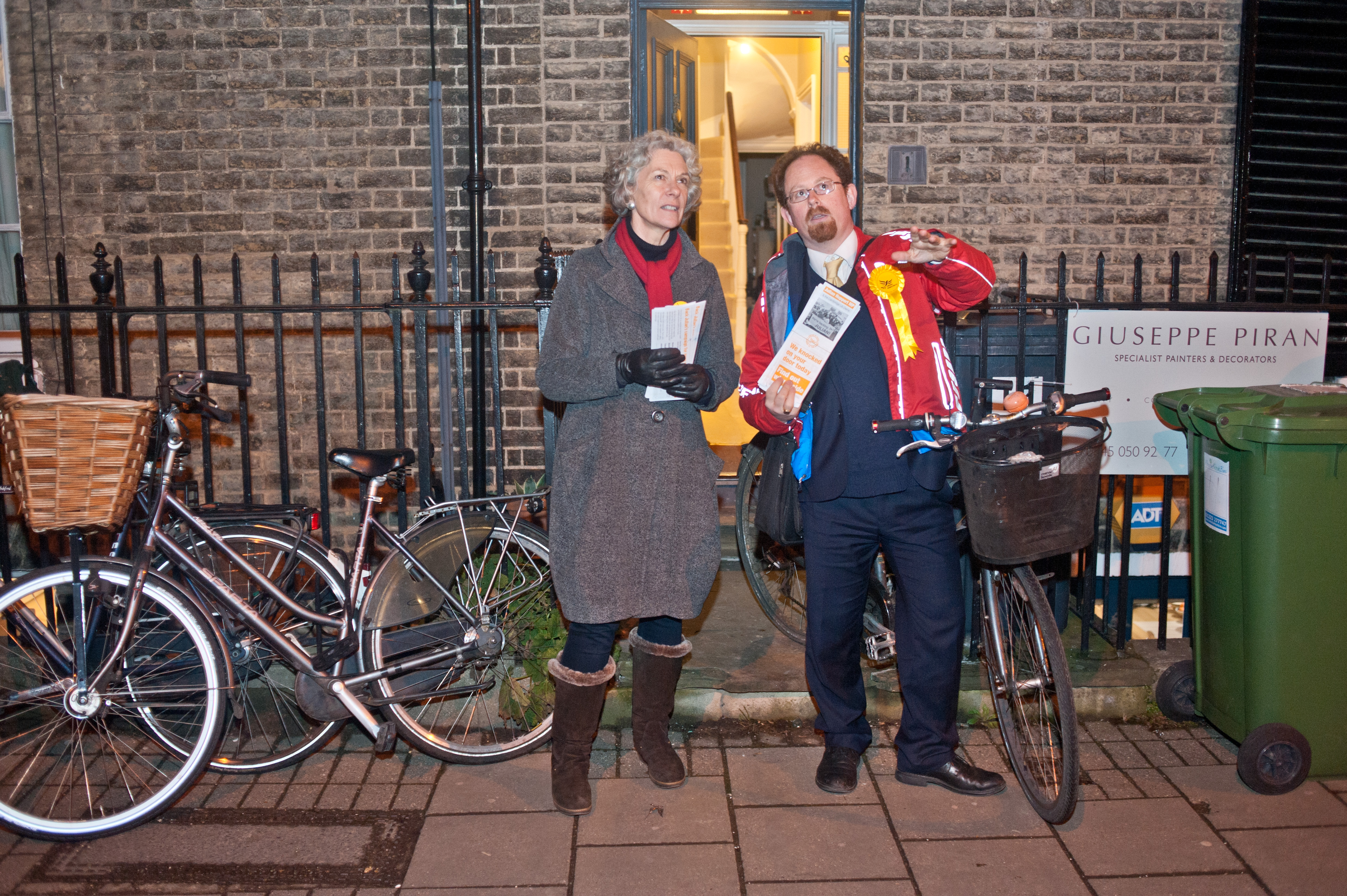 Pics ? Si Barber. Ordered by Marcus Cotton. Text by Matthew Engel. MP for Cambridge Julian Huppert canvassing with supporter Nicola Harrison.