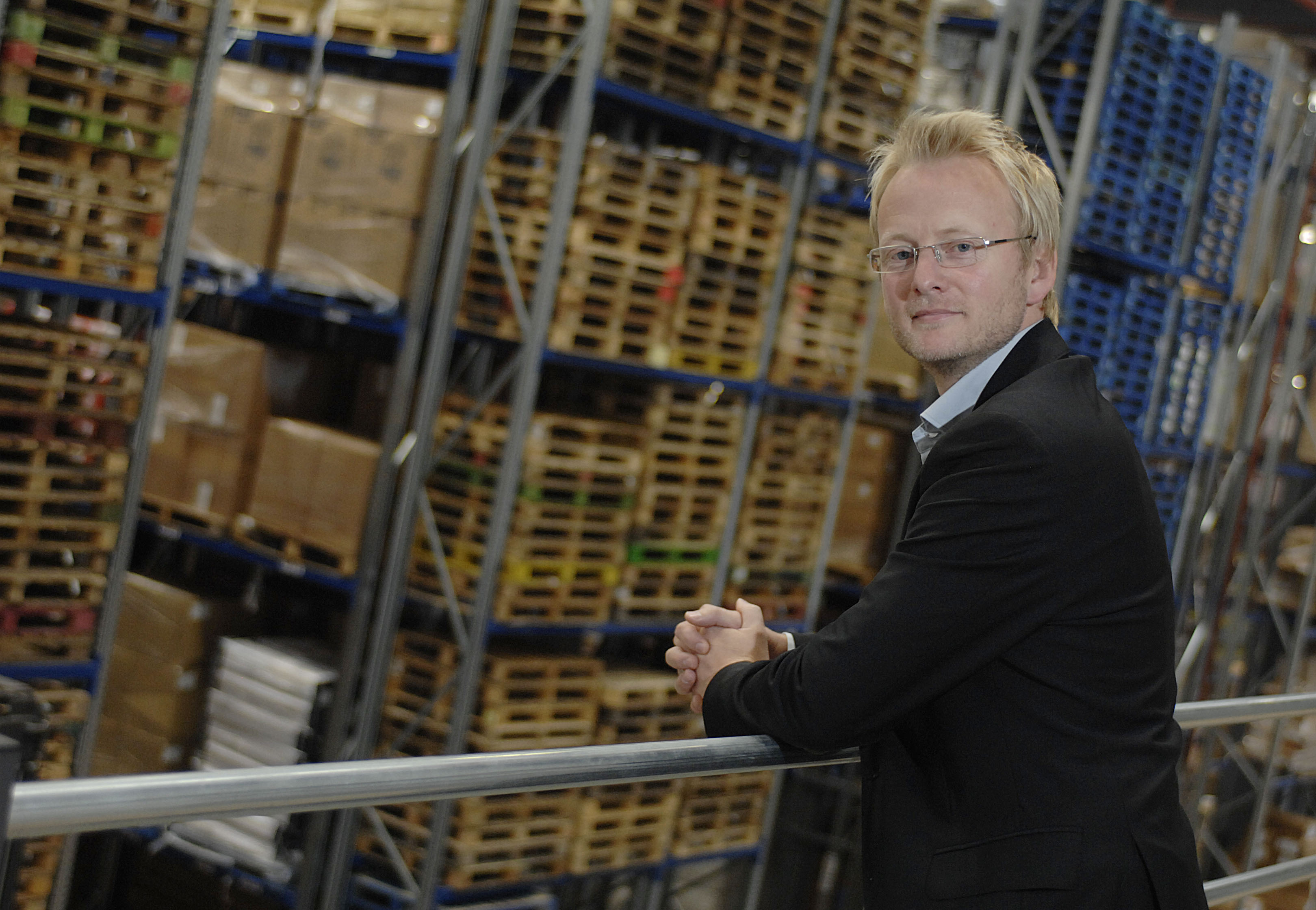 Scott Weavers-Wright, partner in Kiddicare, at the company's warehouse in Peterborough, Cambs. Ordered by Katie Carnie.
