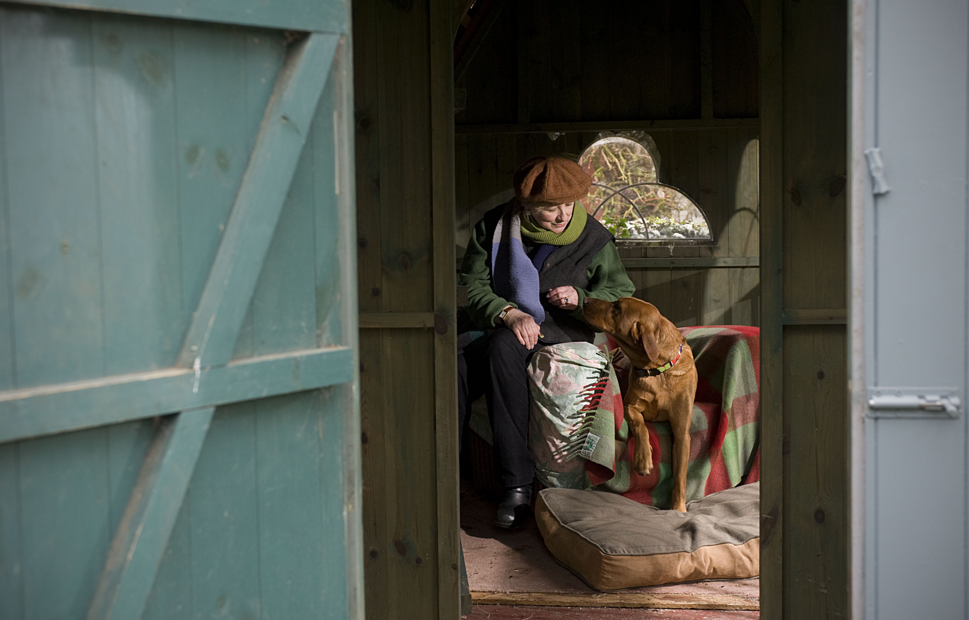 Lady Carla Carlisle at home with her labrador Otis in Suffolk.