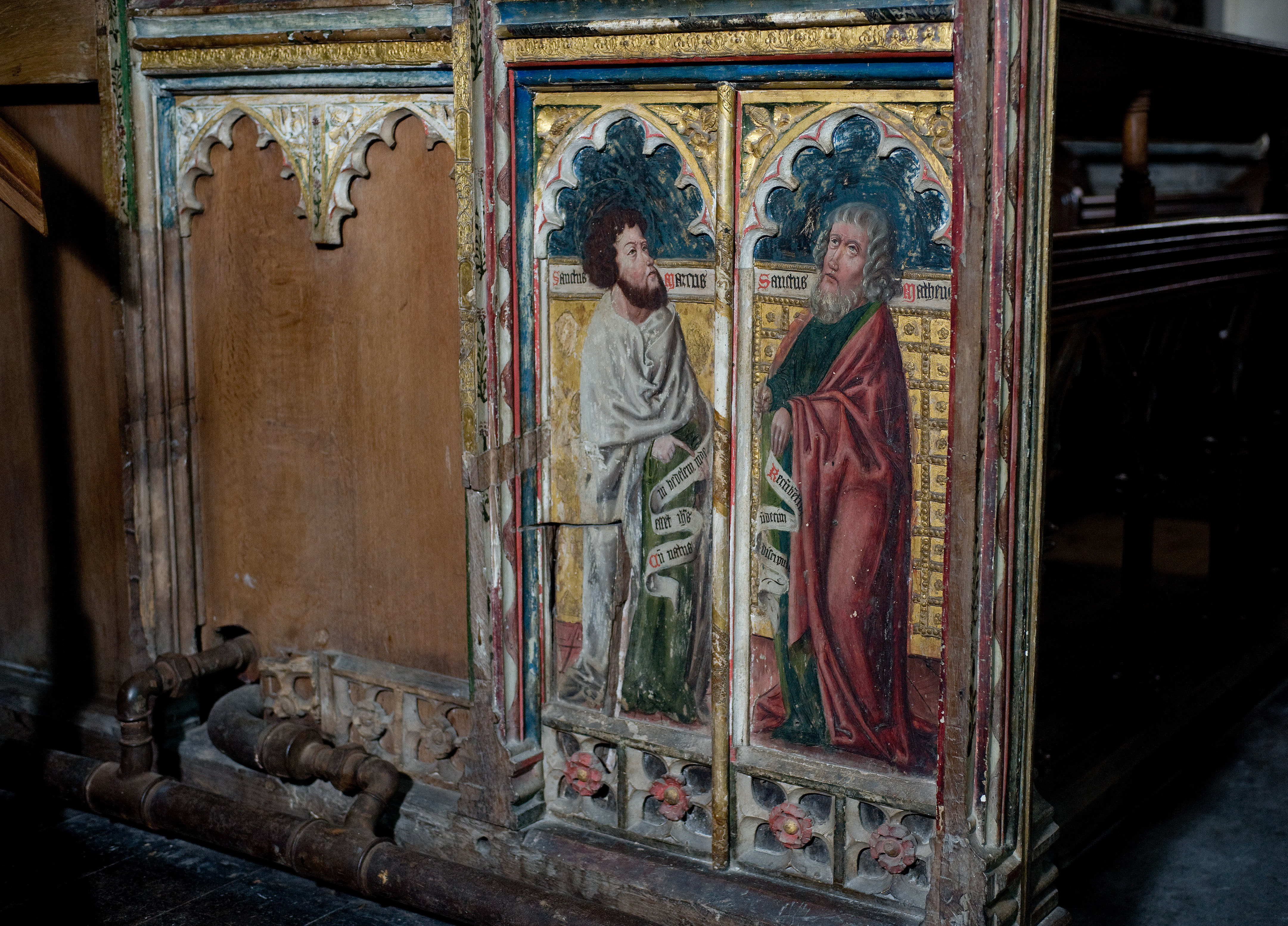 The rood screen at the church of St Andrew, Bramfield, Suffolk.