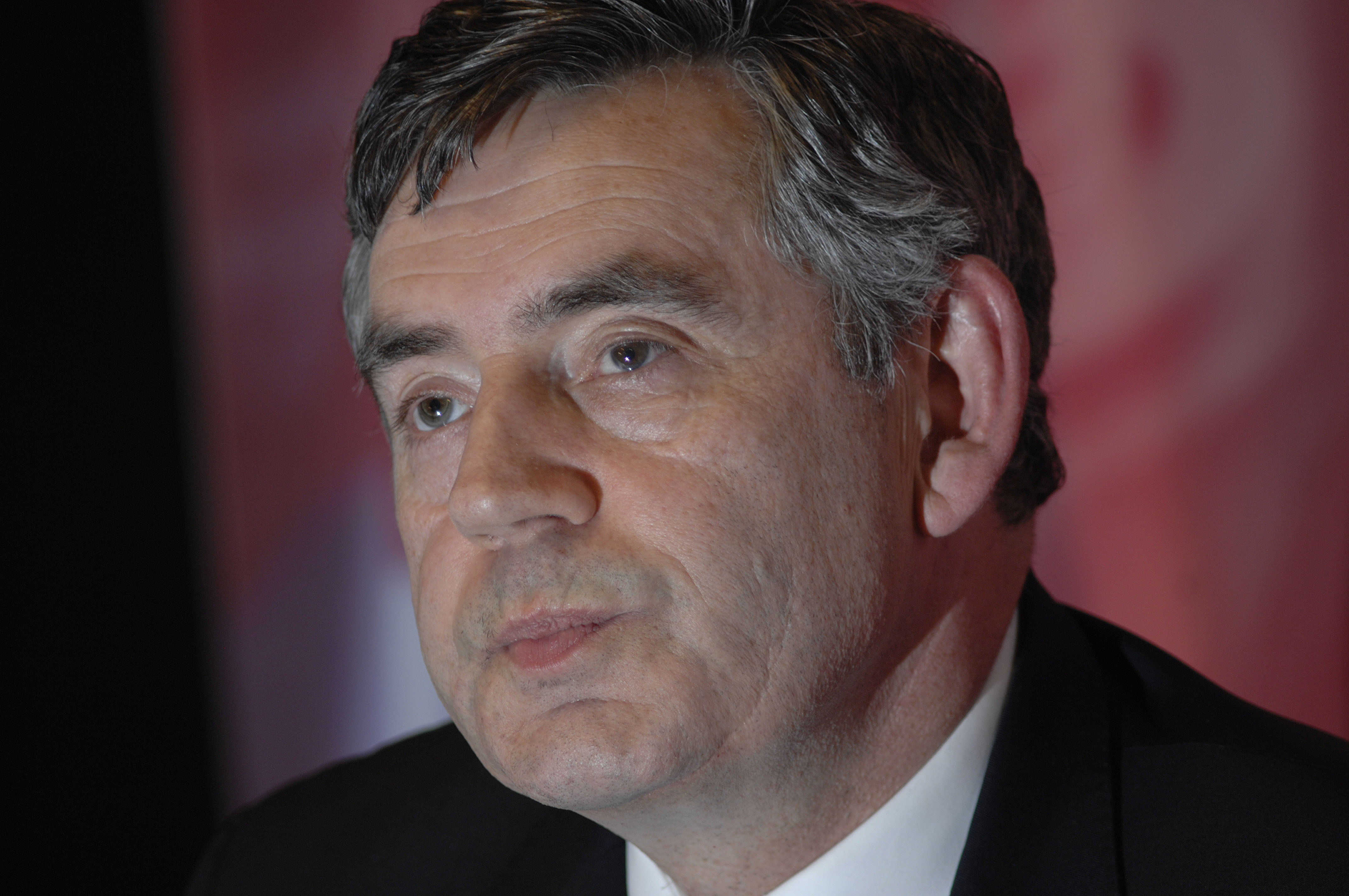 Former Labour Prime MInister Gordon Brown speaking in Leicester