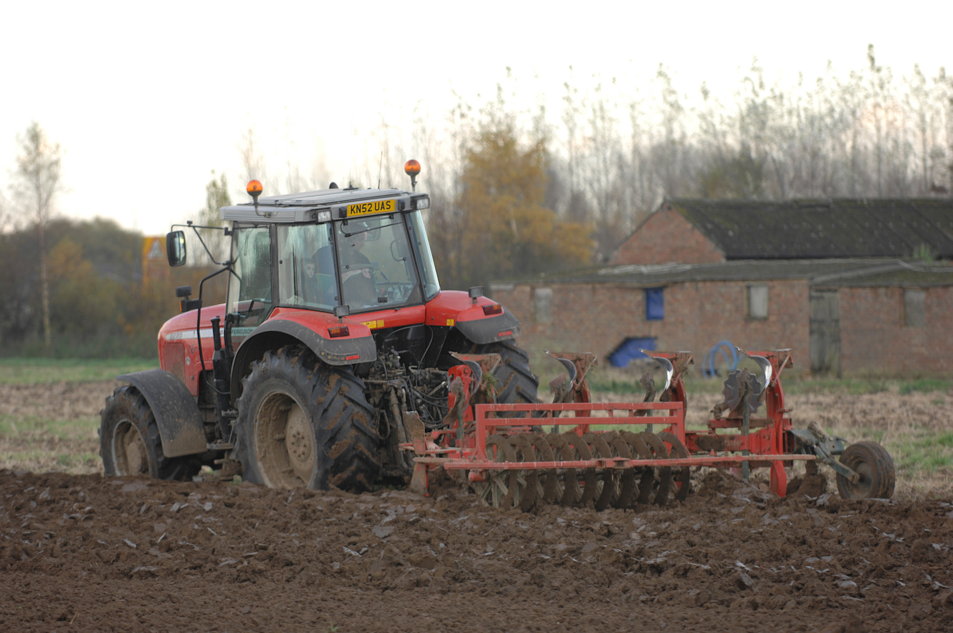 A Massey Ferguson 8220 ploughing up a field prior to the sowing of winter wheat.