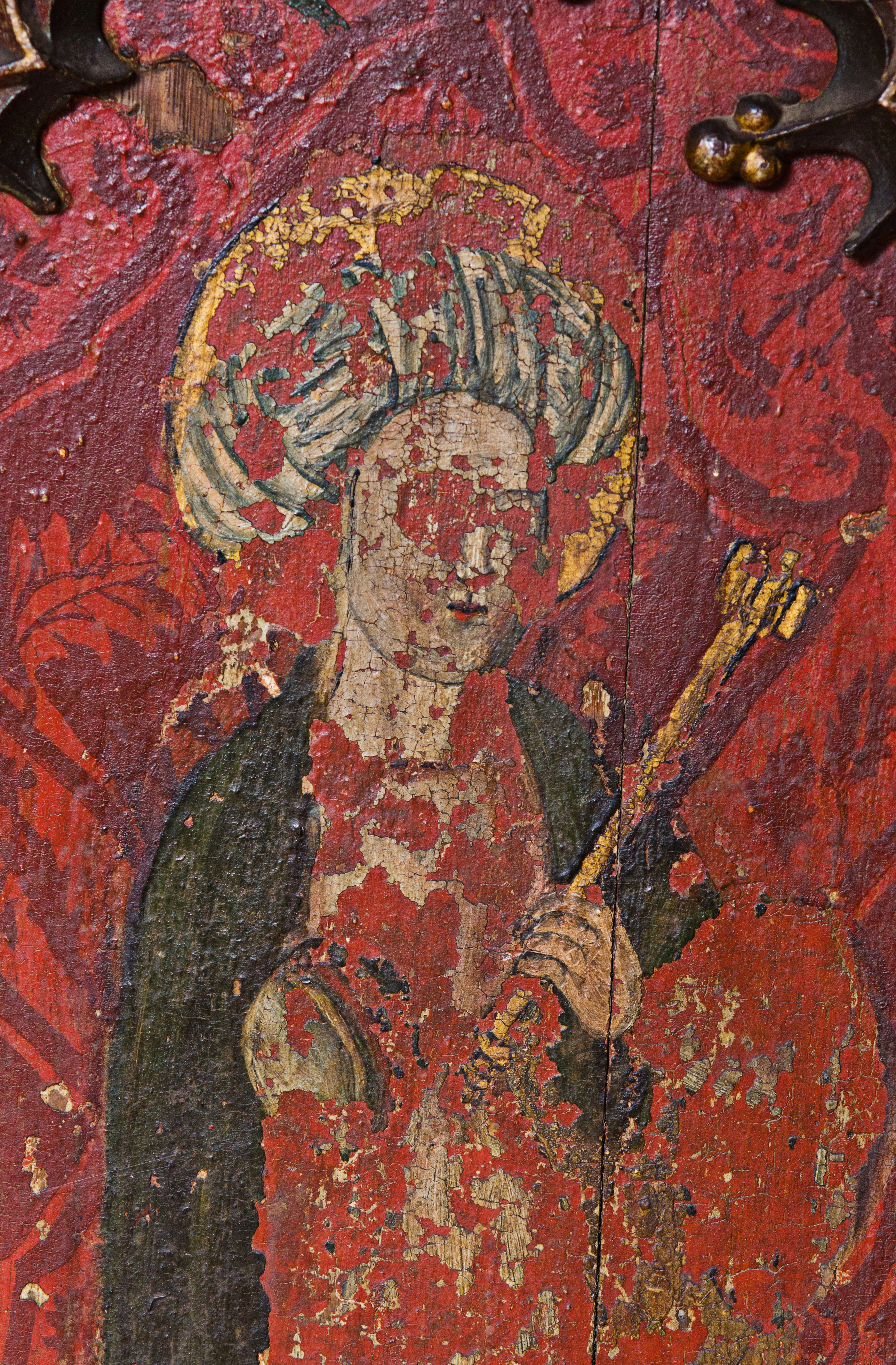 The rood screen and detail at St Nicholas' Church, Dersingham, Norfolk,UK. The figures depicted (l-r) are; St Apollonia, St Denys St Withburga,St Giles,St Juliana and St Cyprian.