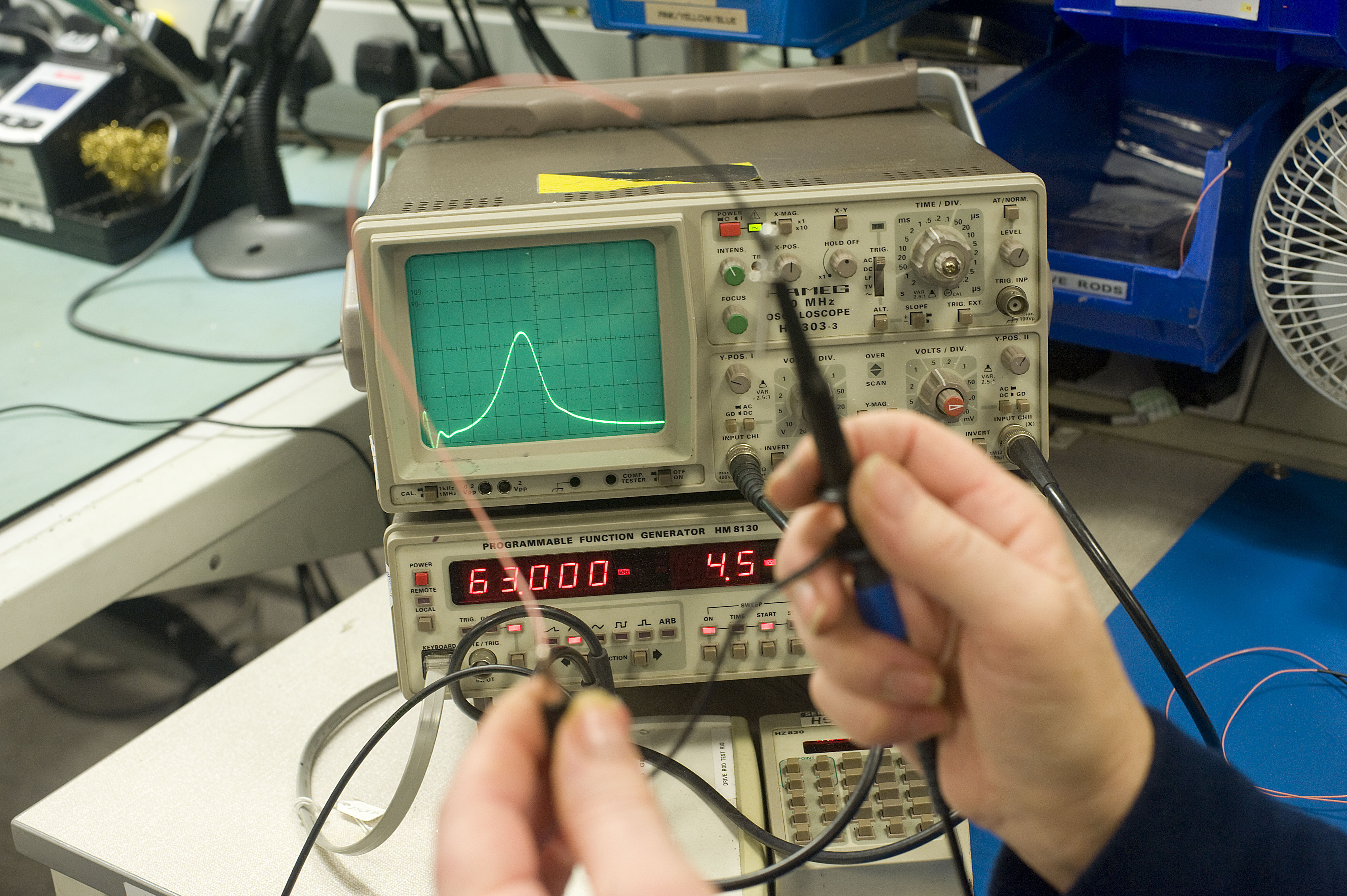 Domino Printing factory floor. Images shows: Assembling and testing the drive rods for the printer heads.