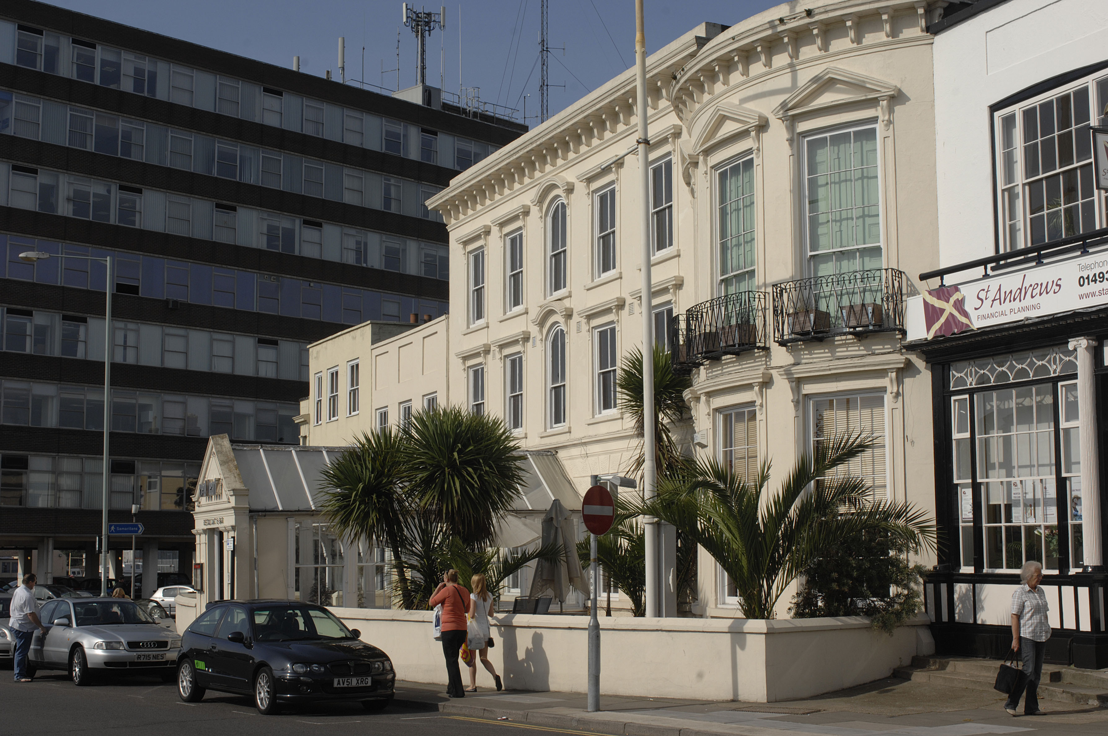 Great Yarmouth in Norfolk. Pic shows Market with buildings of mixed architectural styles in the background.
