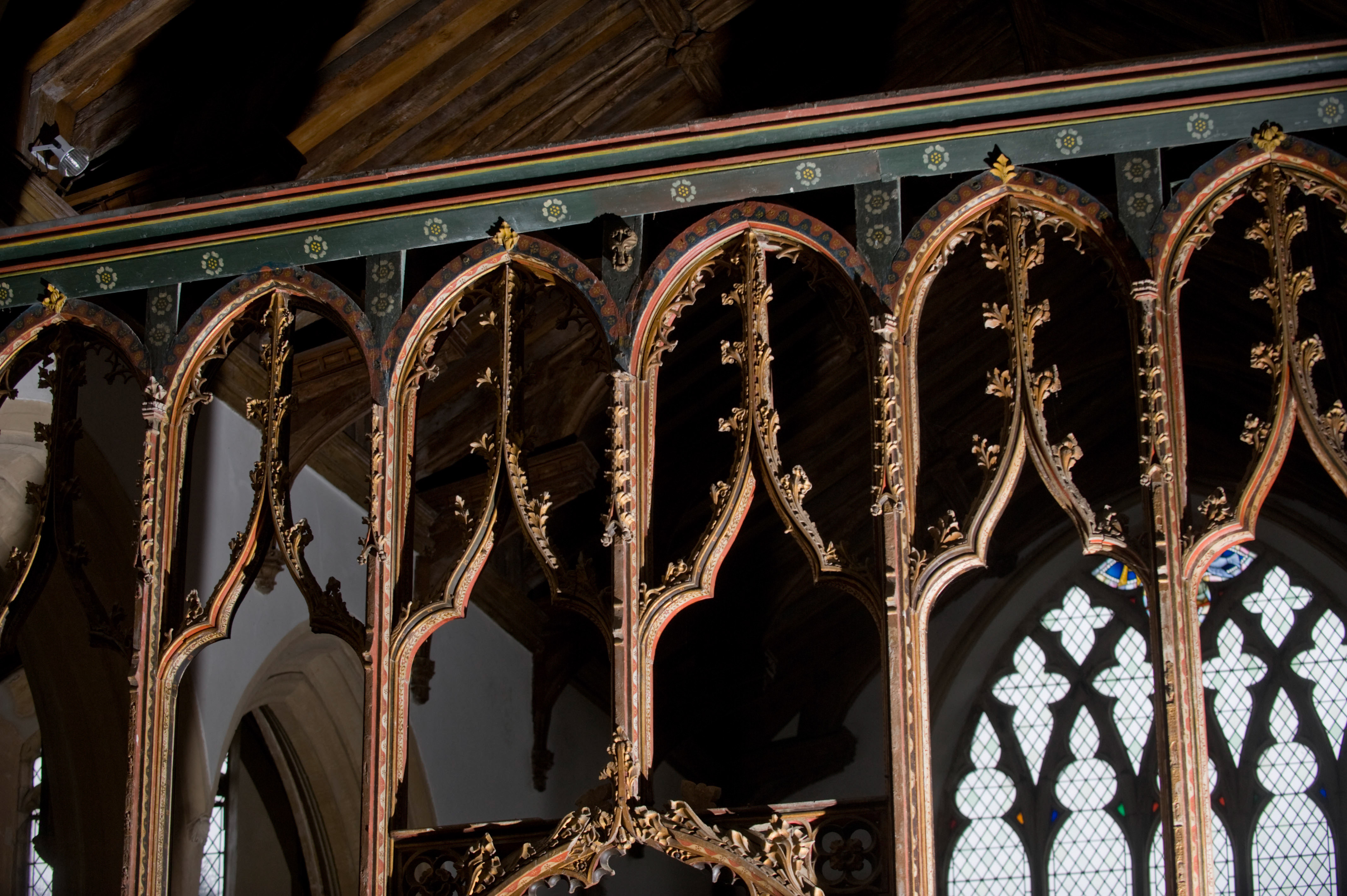The Rood Screen and detail at St Agnes Church, cawston, Norfolk