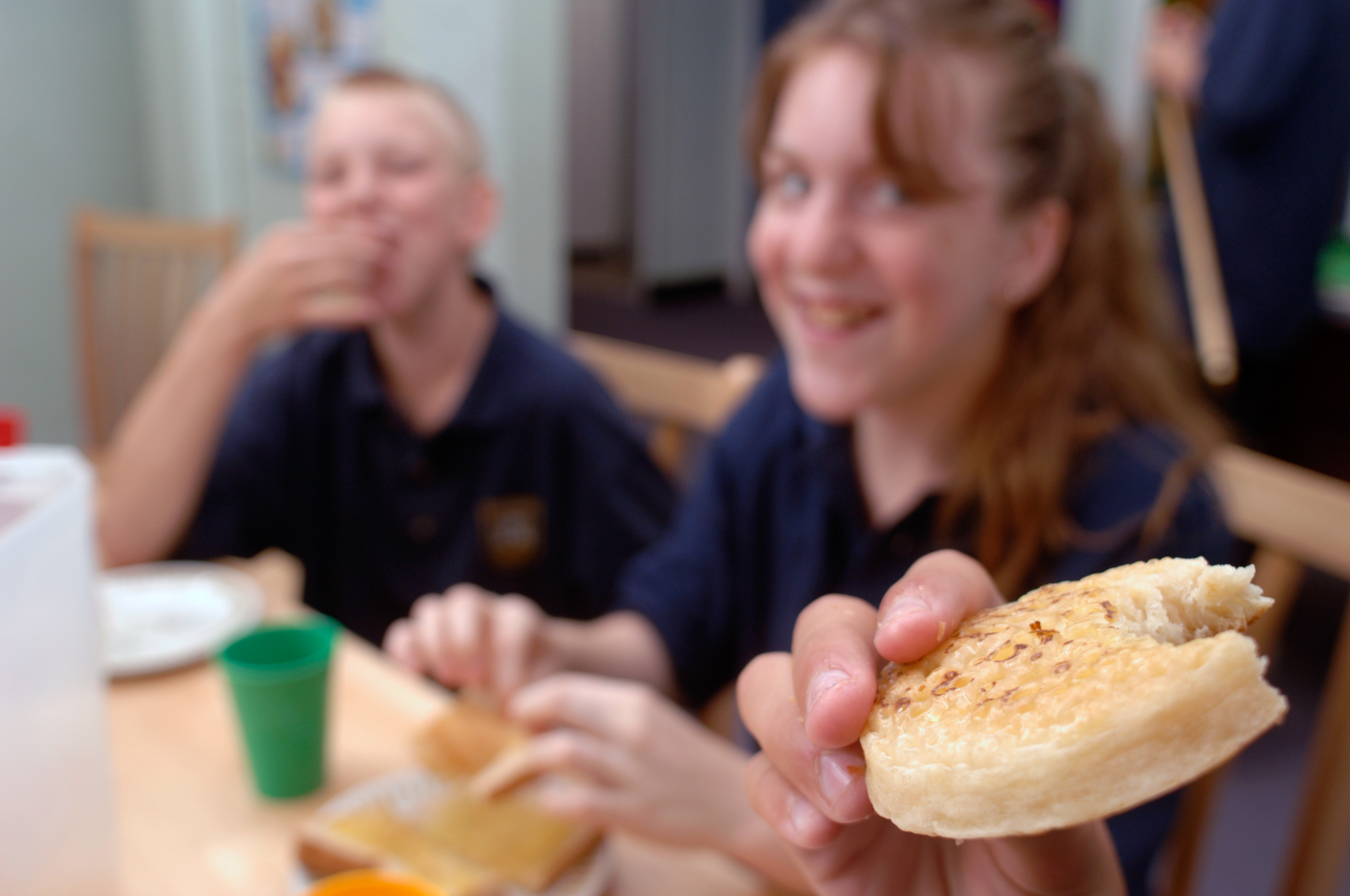 Mandatory Credit: ? Si Barber/07739 472 922 CHILDREN AT A SCHOOL BREAKFAST CLUB