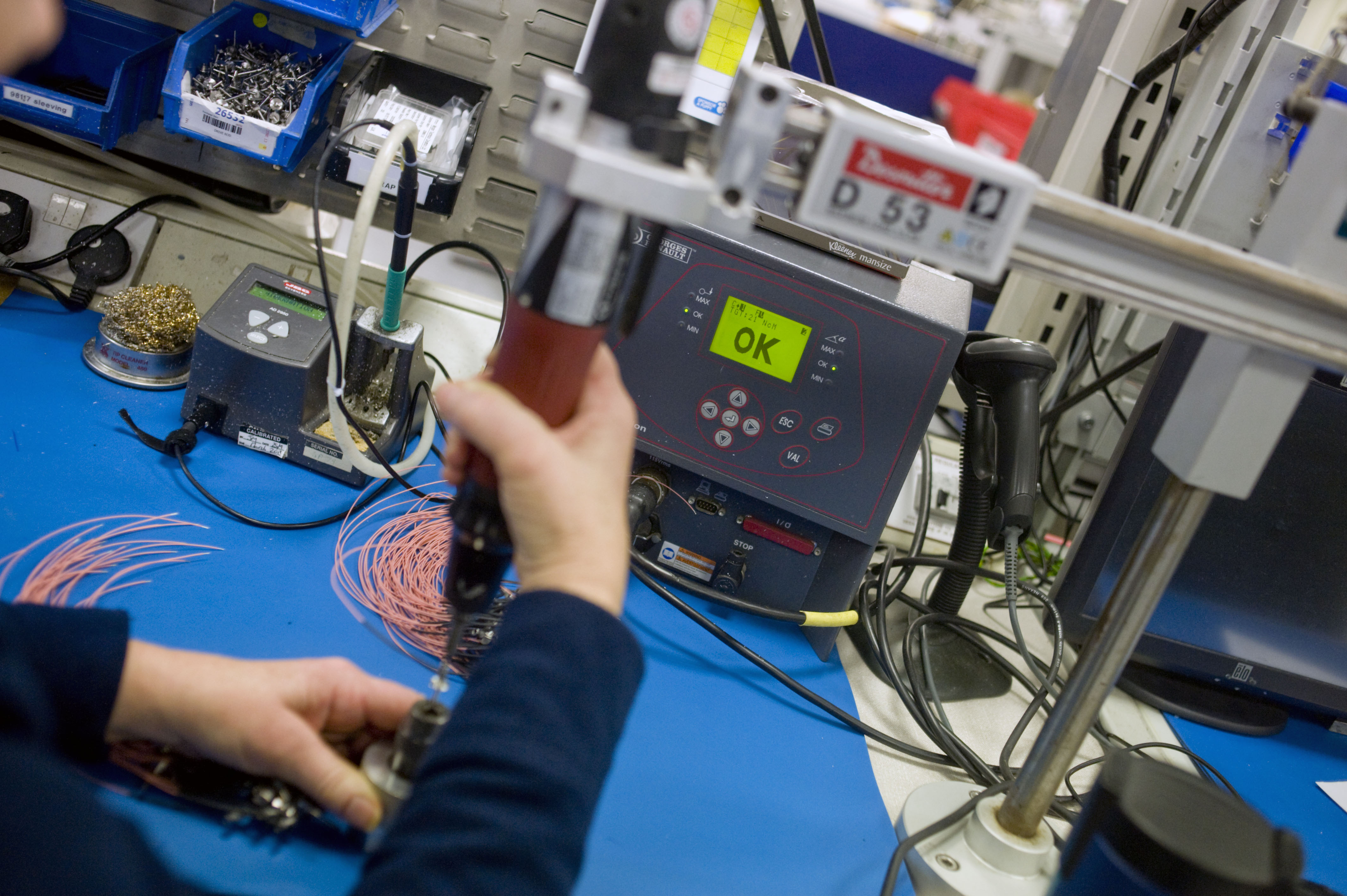 Domino Printing factory floor. Images shows: The final assembly of the print head which contains 32 sapphires