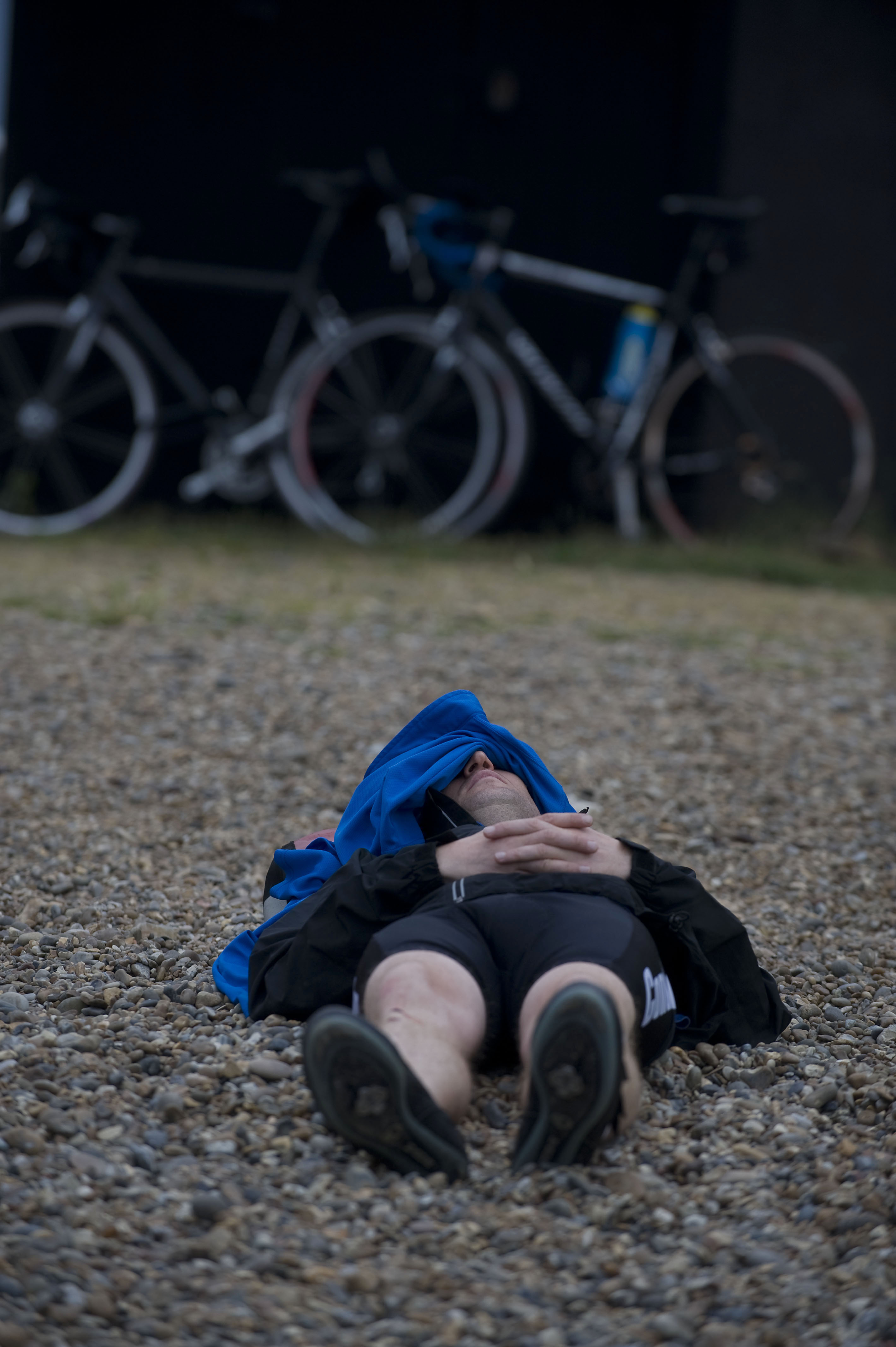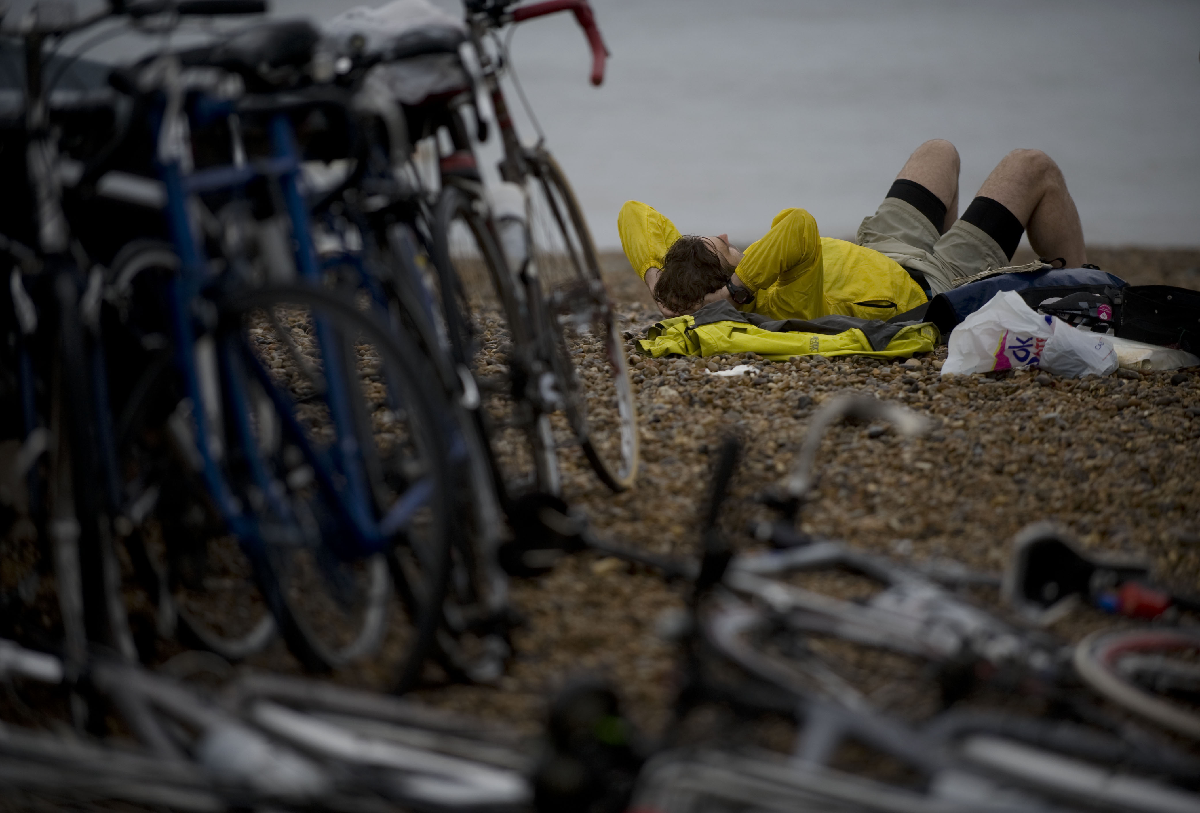 Si Barber 07739 472 922 Ordered by Leila Rawlins The Dunwich Dynamo cycle race in which competitors ride 120 mile route from London Fields to Dunwich in Suffolk overnight. Picture shows competitors sleeping on Dunwich beach after completing the race.