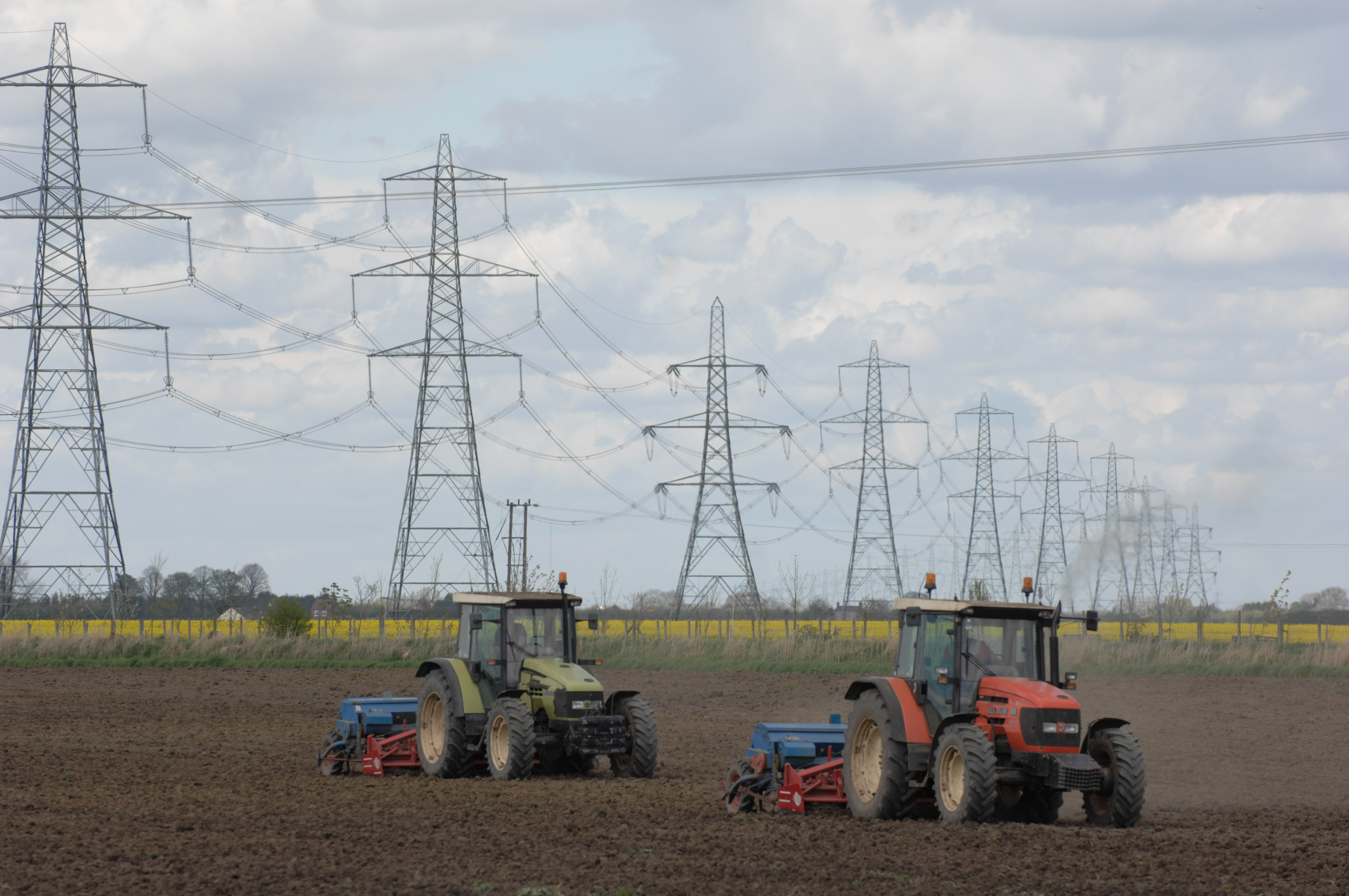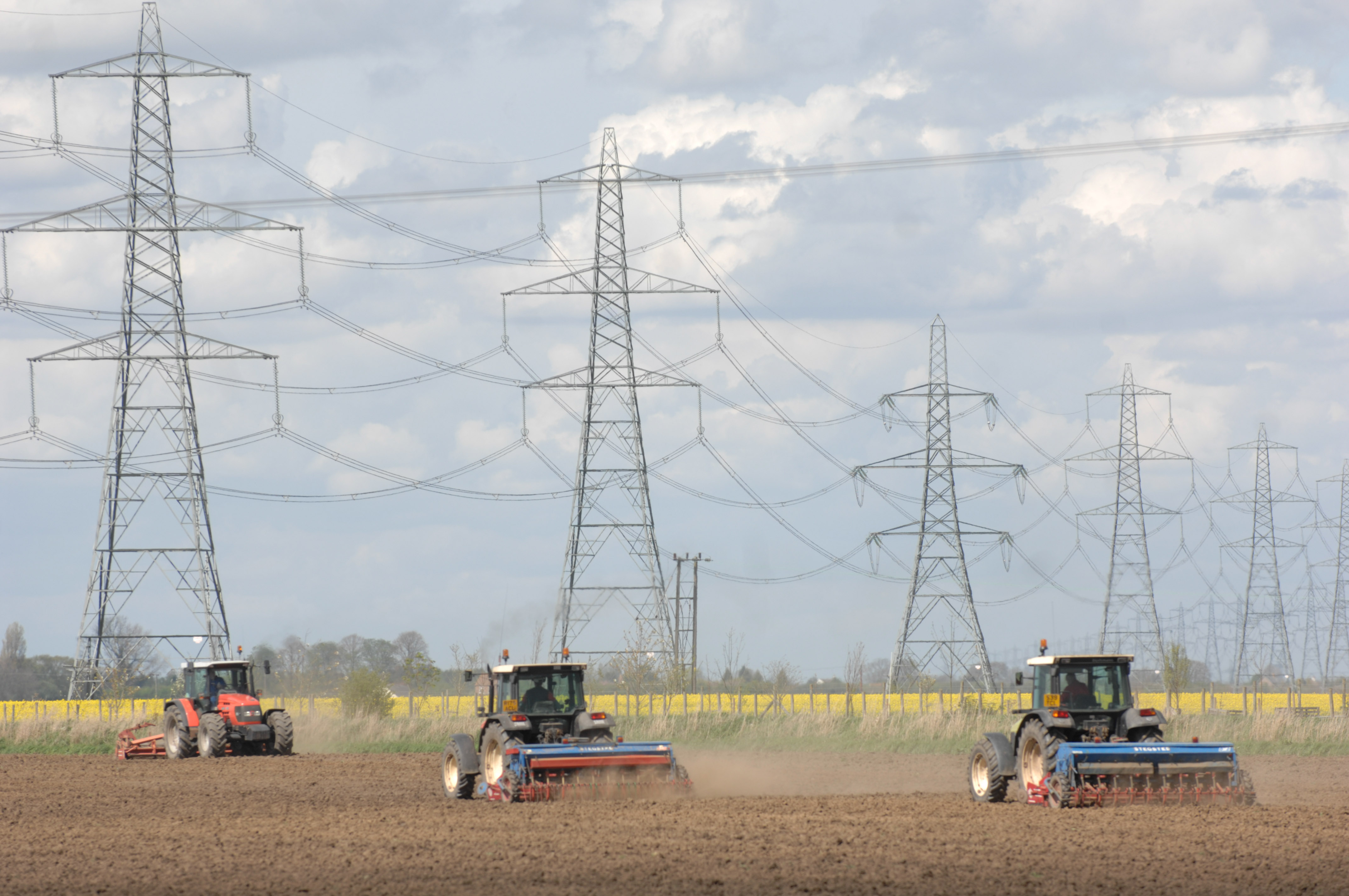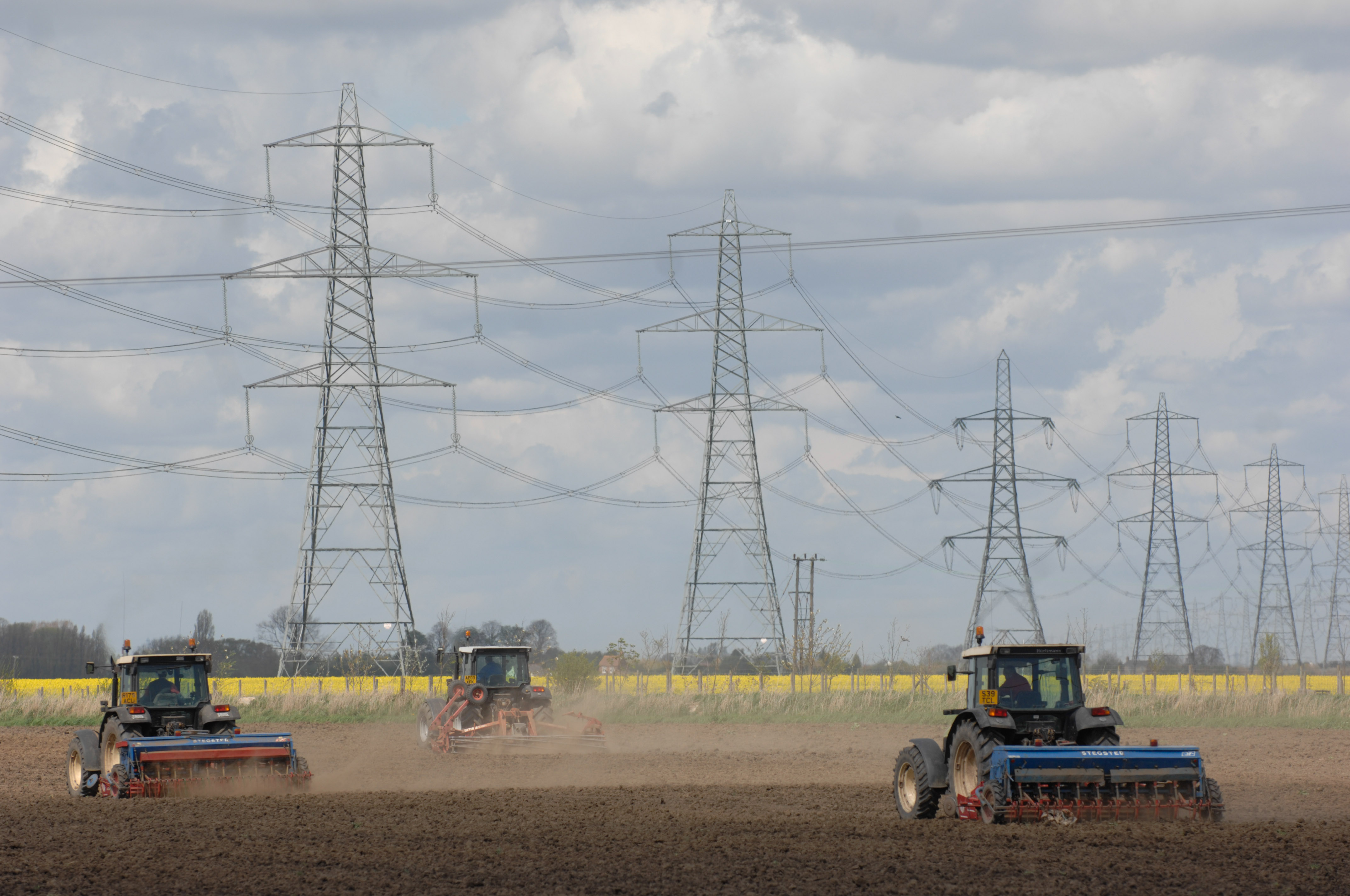 agriculture electricity farming fenland field norfolk plough ploughing pylons tractor