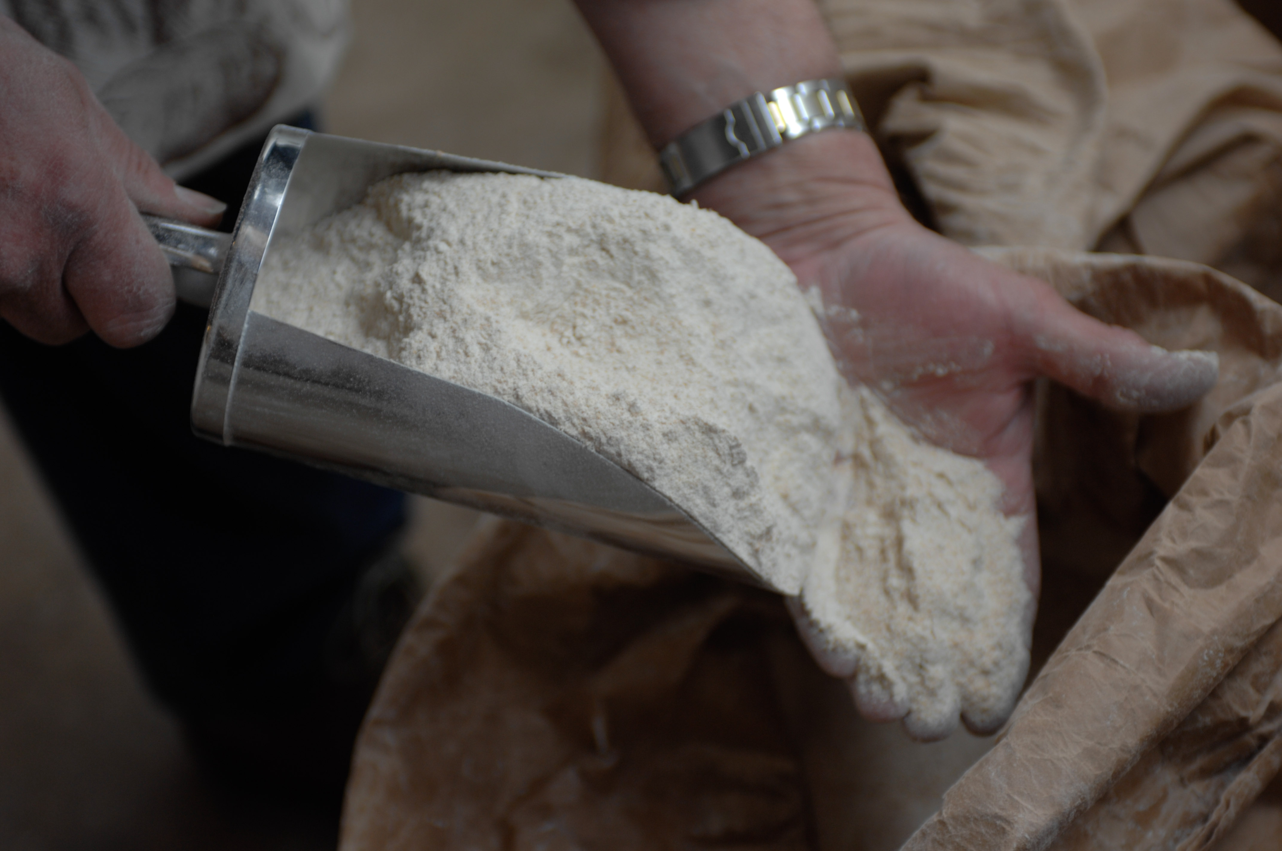 Letheringsett Watermill, in Norfolk which has been milling grain commercially since Medieval times. The mill has just installed two new grinding stones from Holland allowing them to double production. Pic shows Spelt flour.