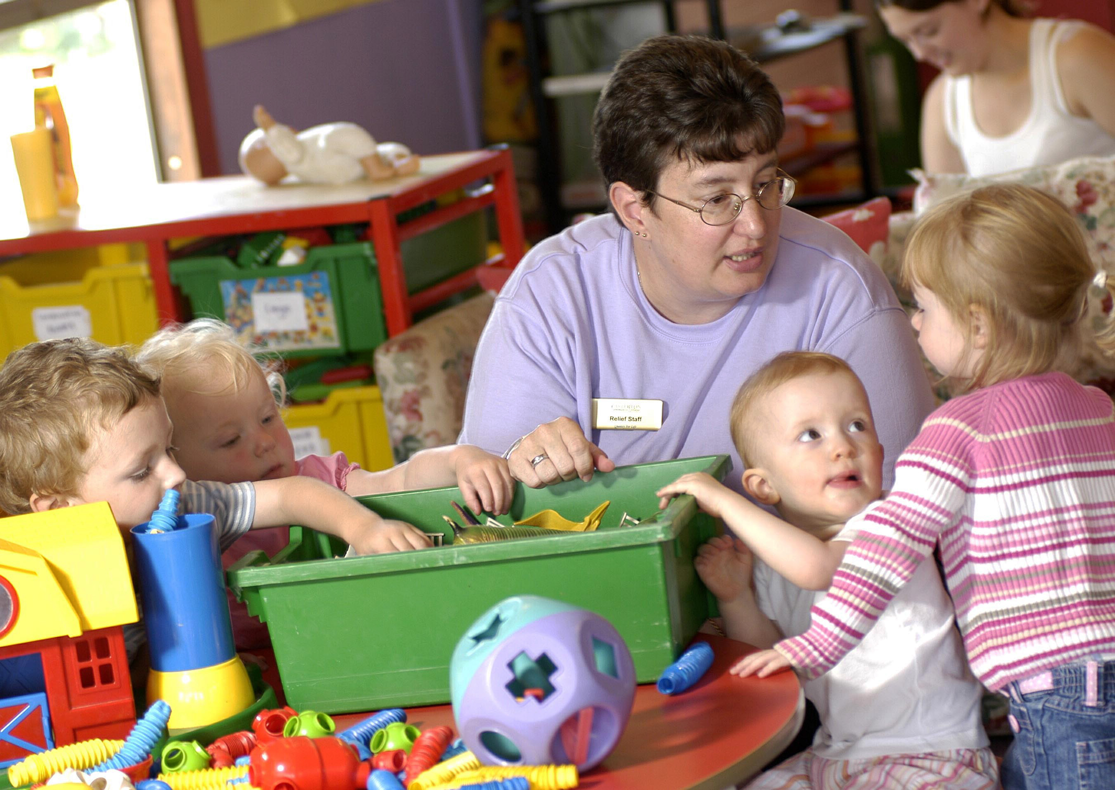 Share Content Published November 3, 2014 ©Si Barber. Moral rights asserted. Mandatory Credit: ? Si Barber/07739 472 922 laygroup workers taking a break bonding break care caring children earnings employees hours kindergarten learn learning minimum nursery play playgroup playing rest staff wage with workers working