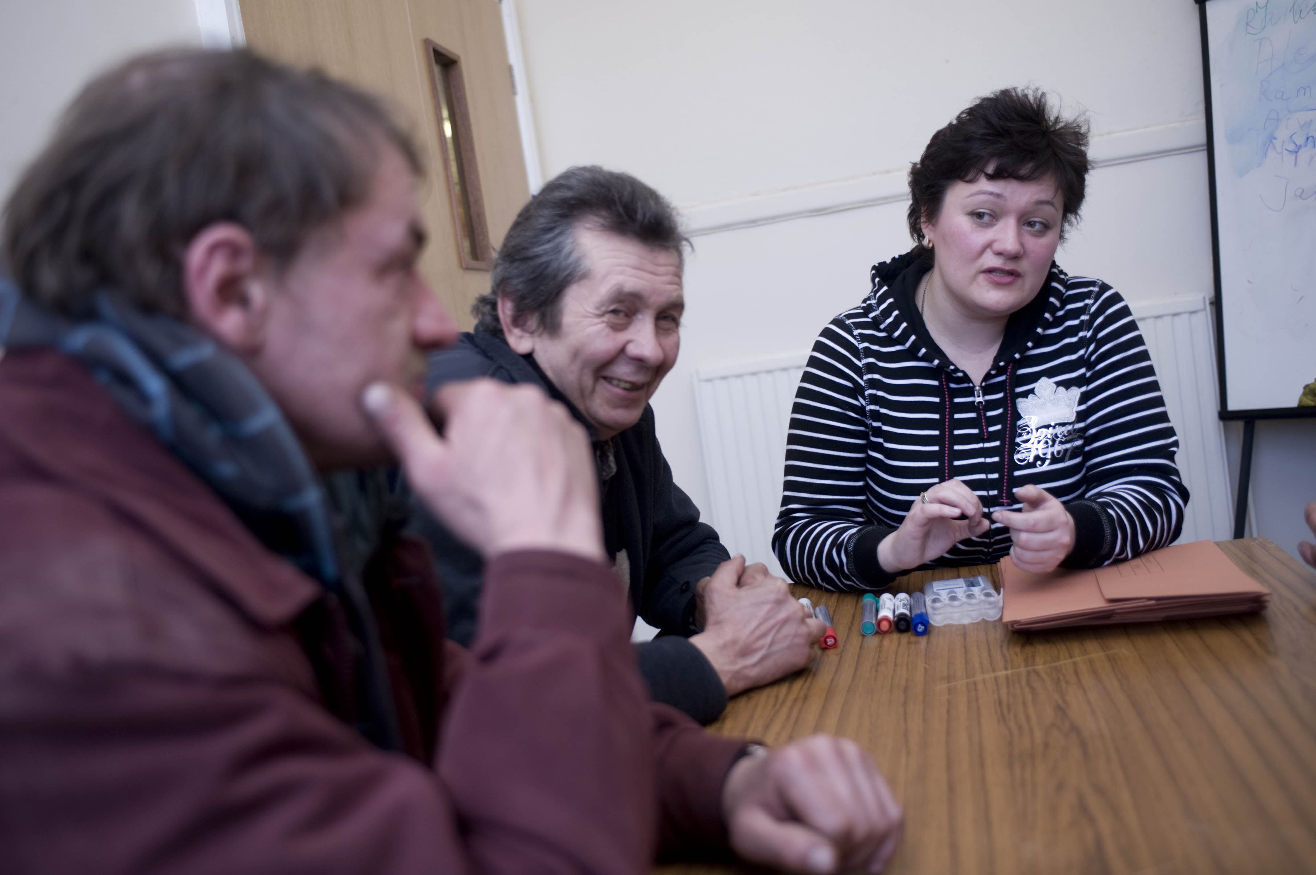 Homeless east Europeans learning English to give them a better chance of emloyment.