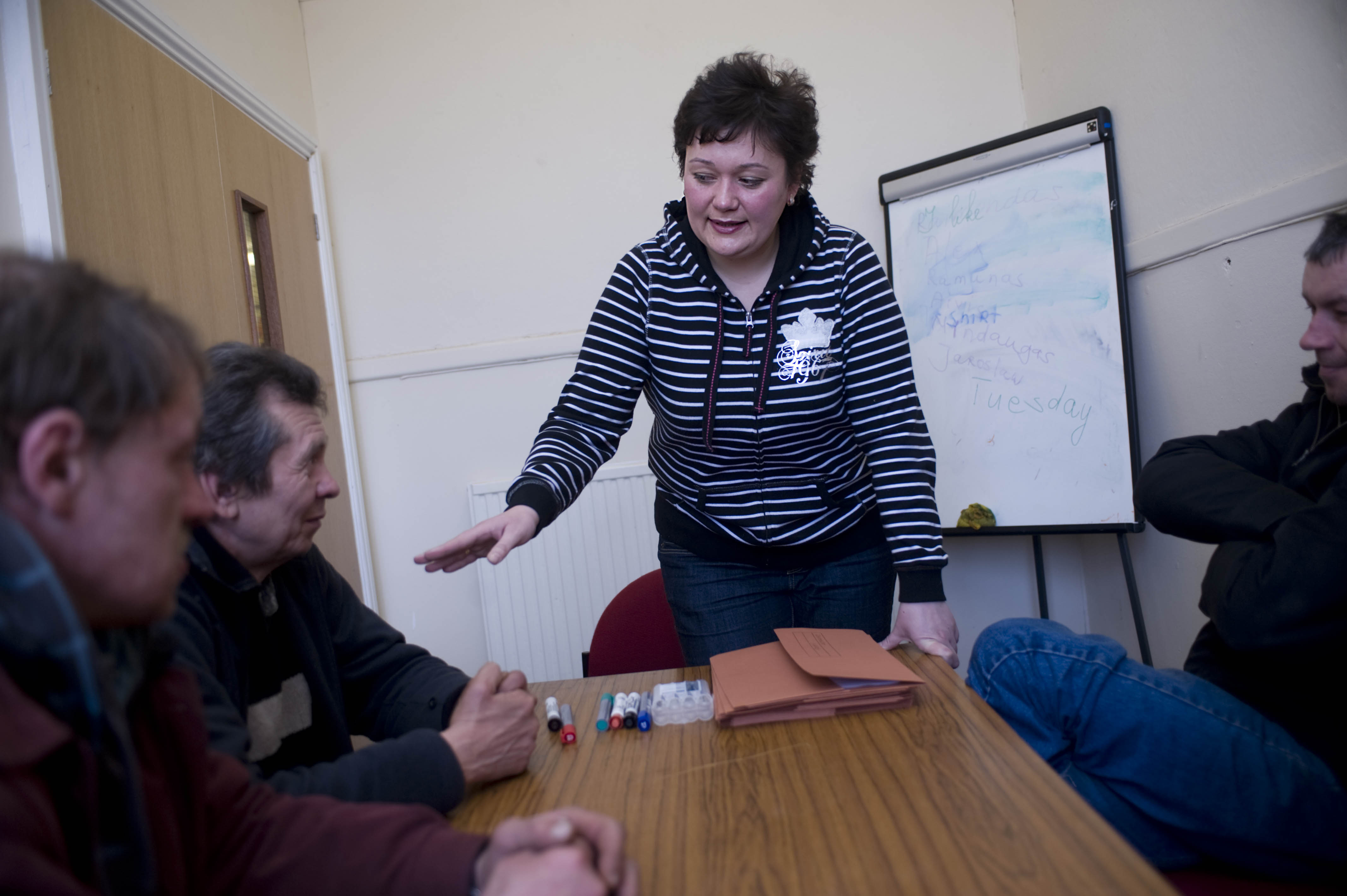 Homeless east Europeans learning English to give them a better chance of emloyment.