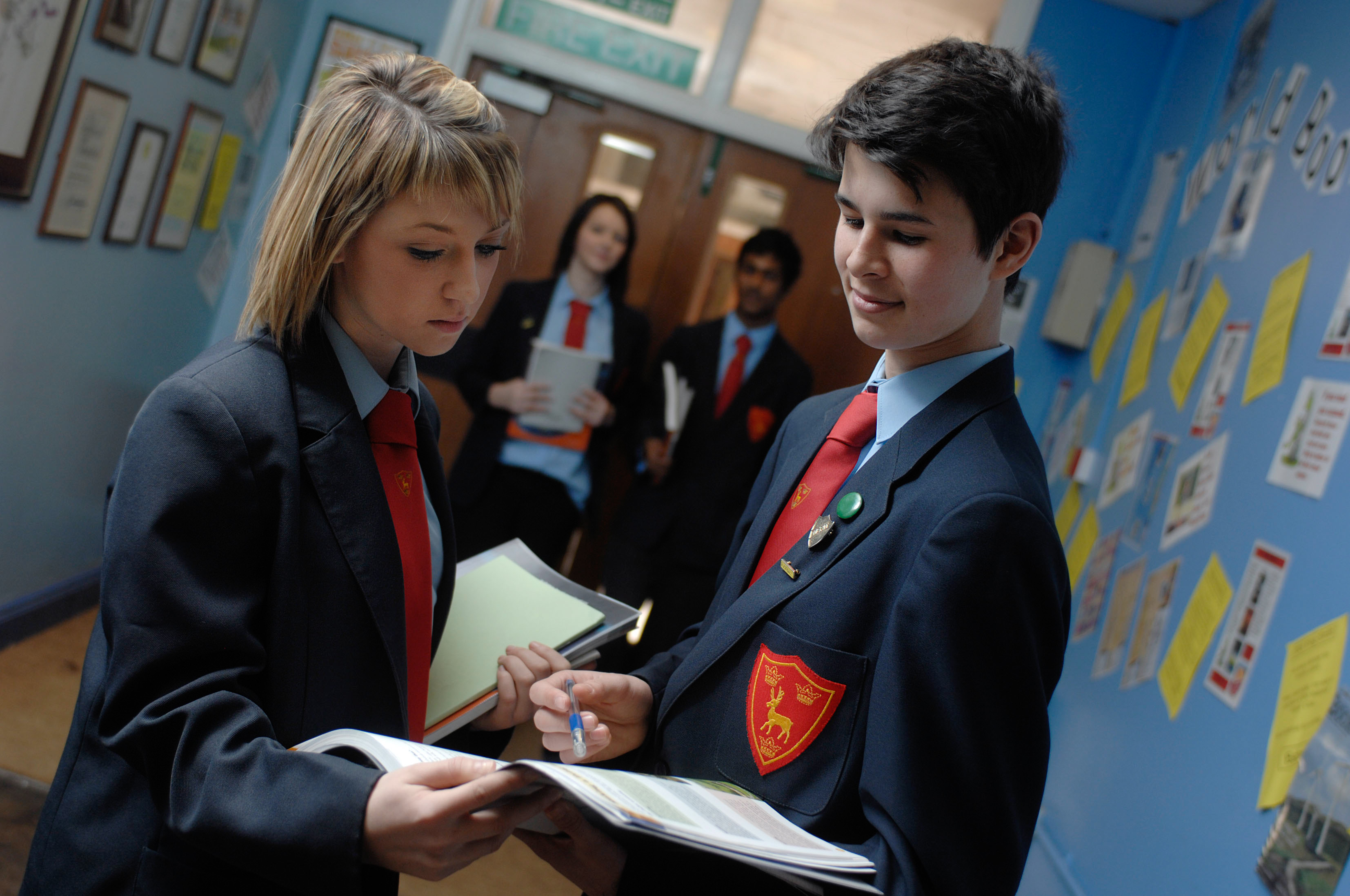 Year 10 students at Neatherd High School, Dereham, Norfolk They are identified (l-r) as Martha Sandford and Duncan Jameson. Pic by Si Barber