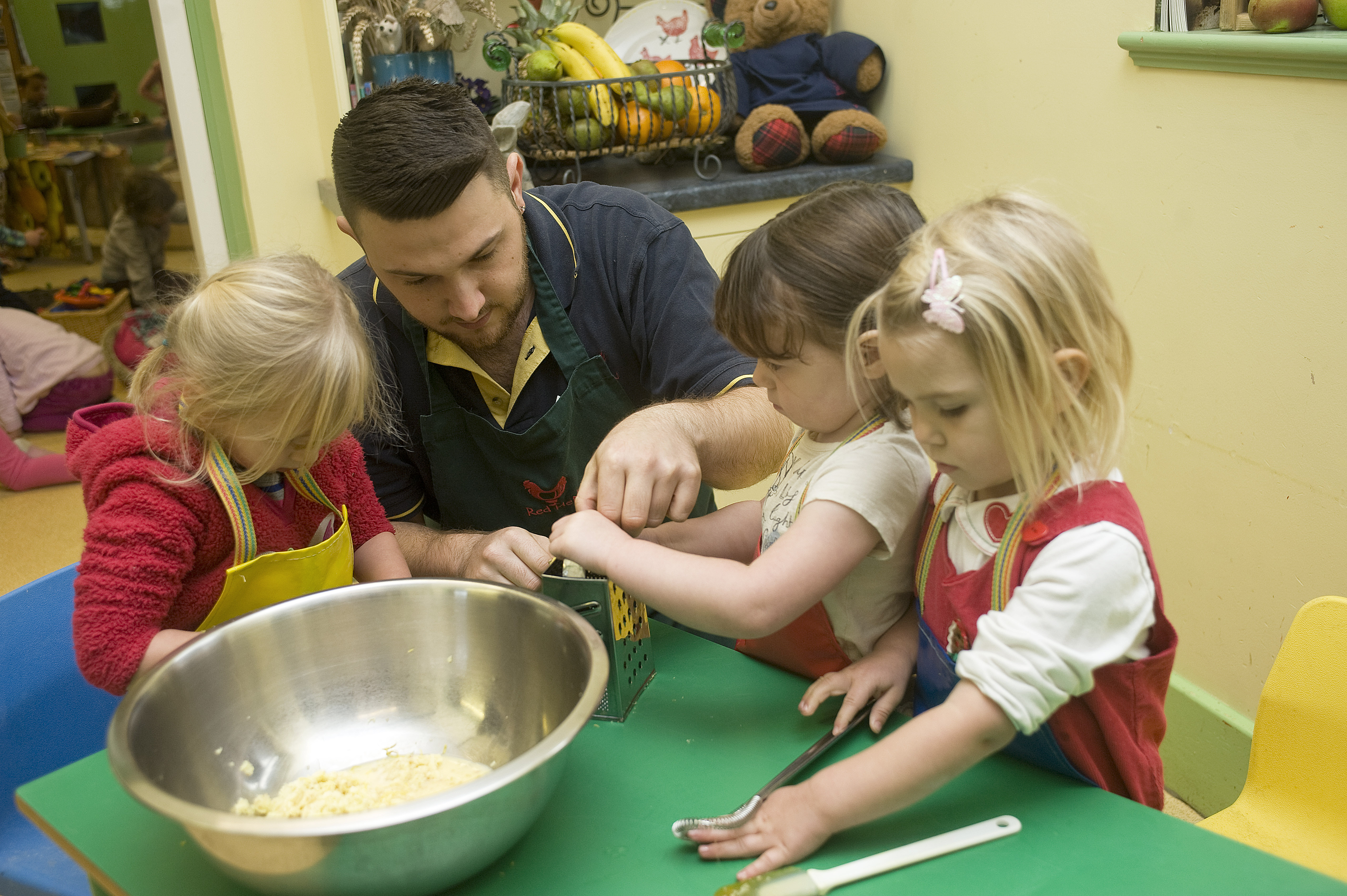 ?Si Barber/07739 472 922 Staff & children at a nursery leanring cooing skills.