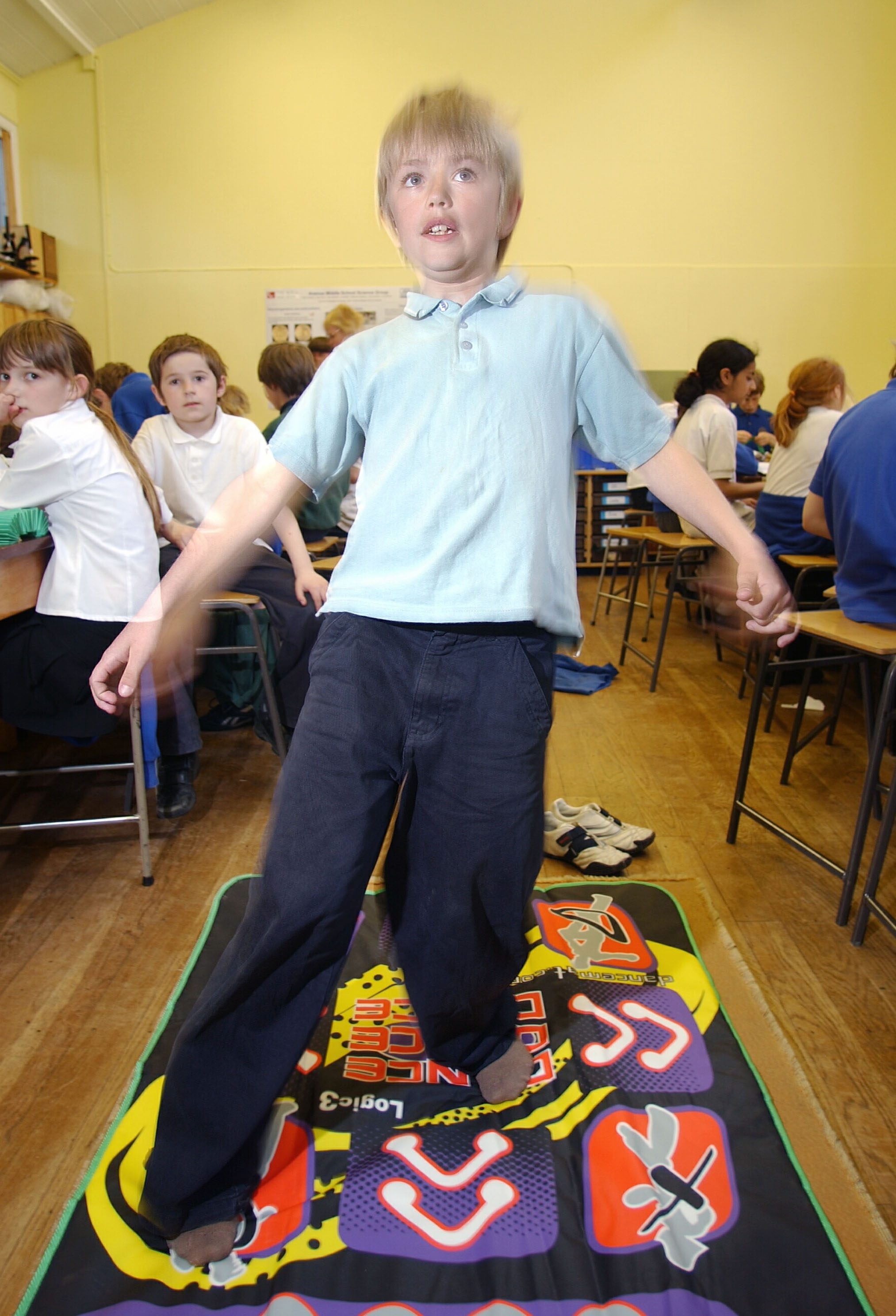 Mandatory Credit: ? Si Barber/07739 472 922 Year 5 children learning Spanish using an interactive dance mat