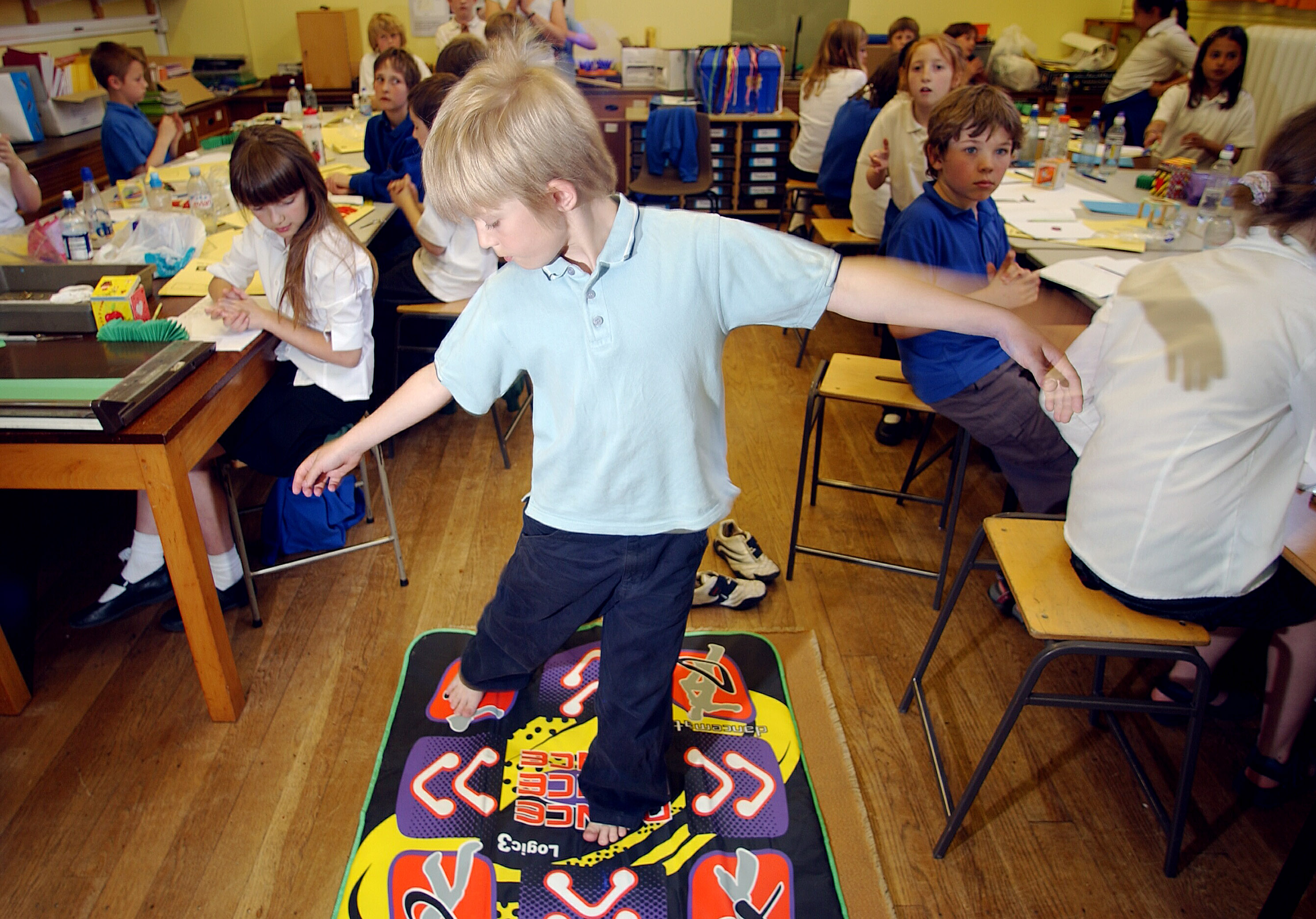 Mandatory Credit: ? Si Barber/07739 472 922 Year 5 children learning Spanish using an interactive dance mat