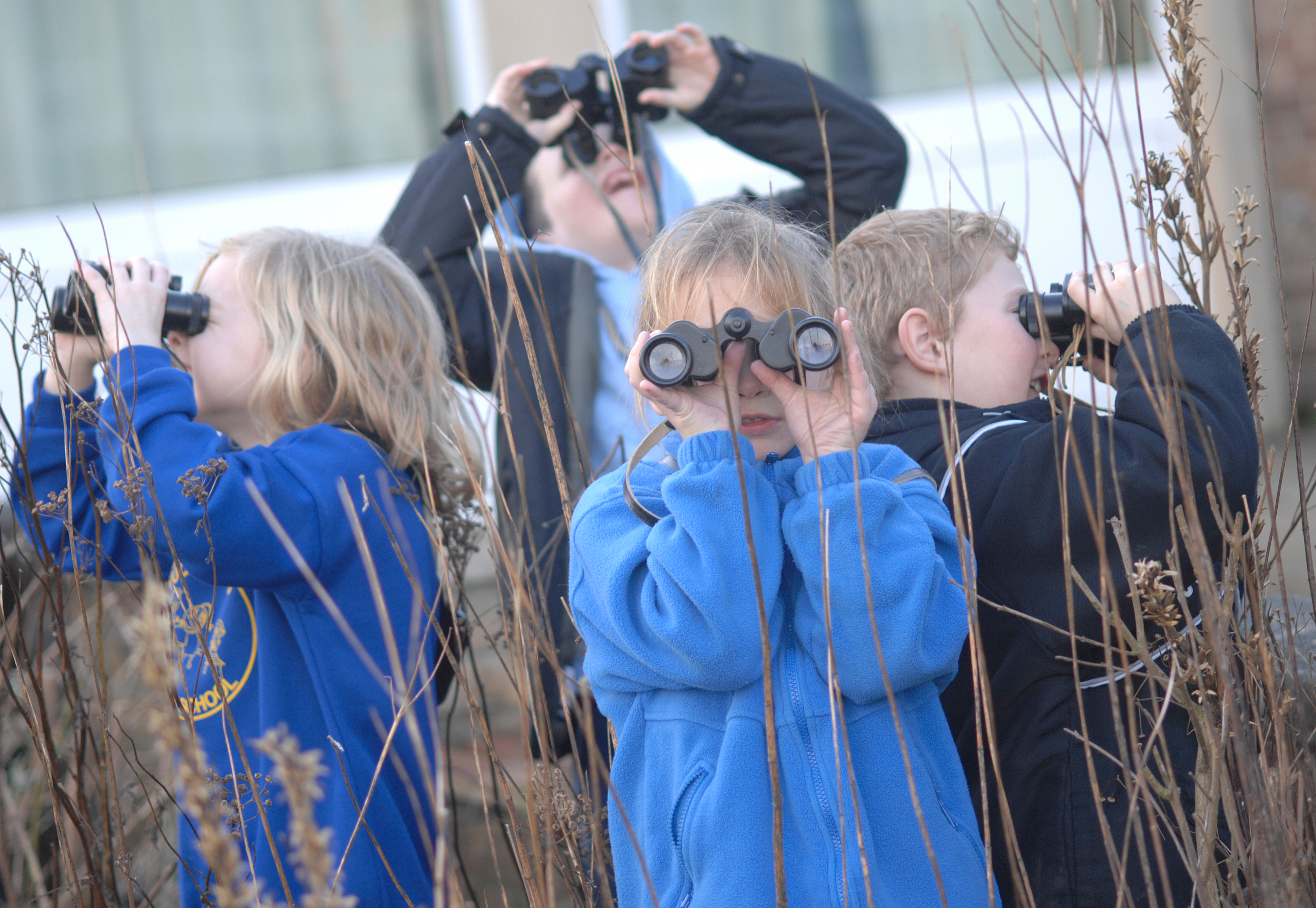 Pic ? Si Barber - 07739 472 922 Schoolchildren birdwatching