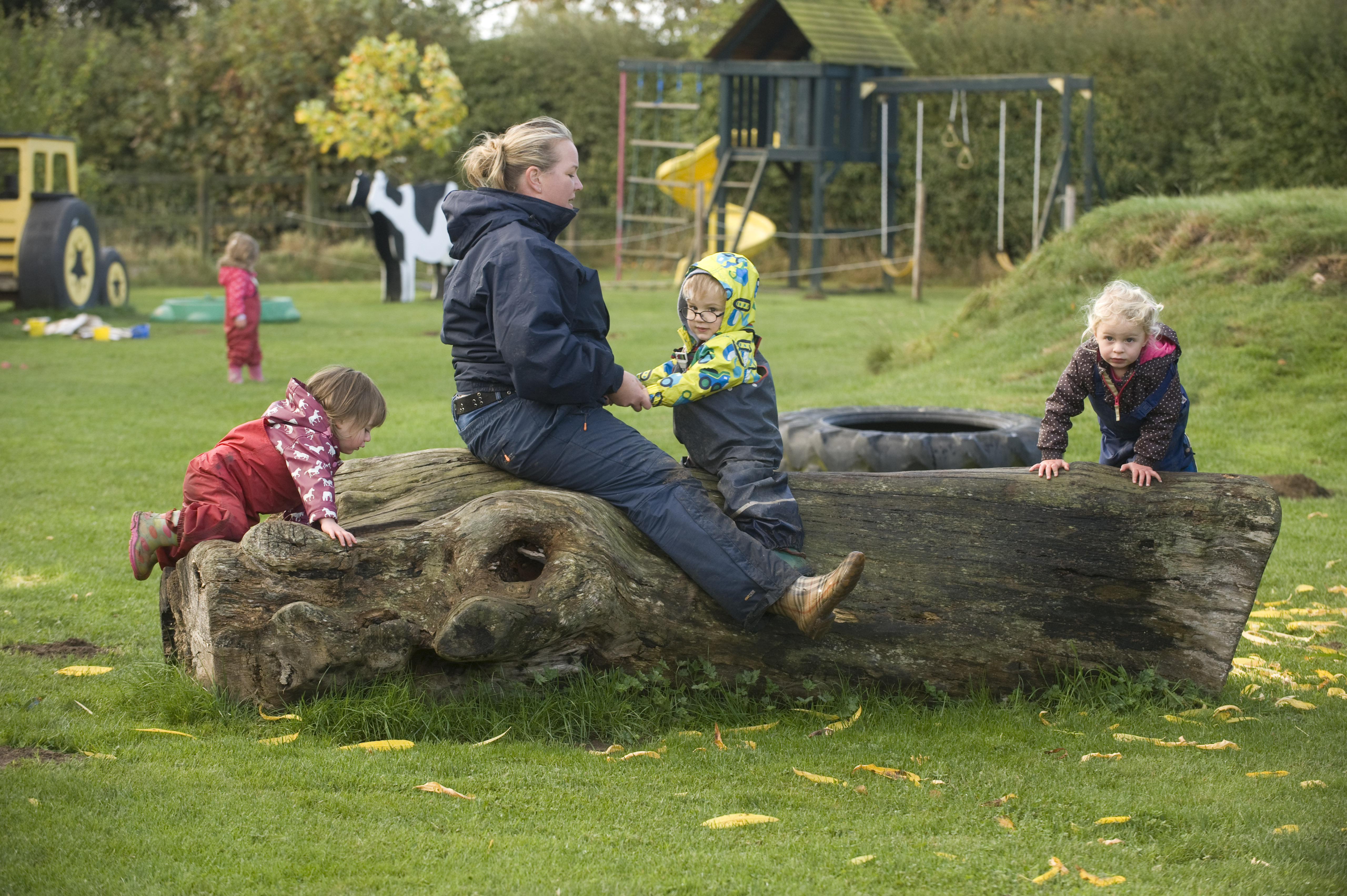 ?Si Barber/07739 472 922 Children at a private nursery playing outside with their carers.