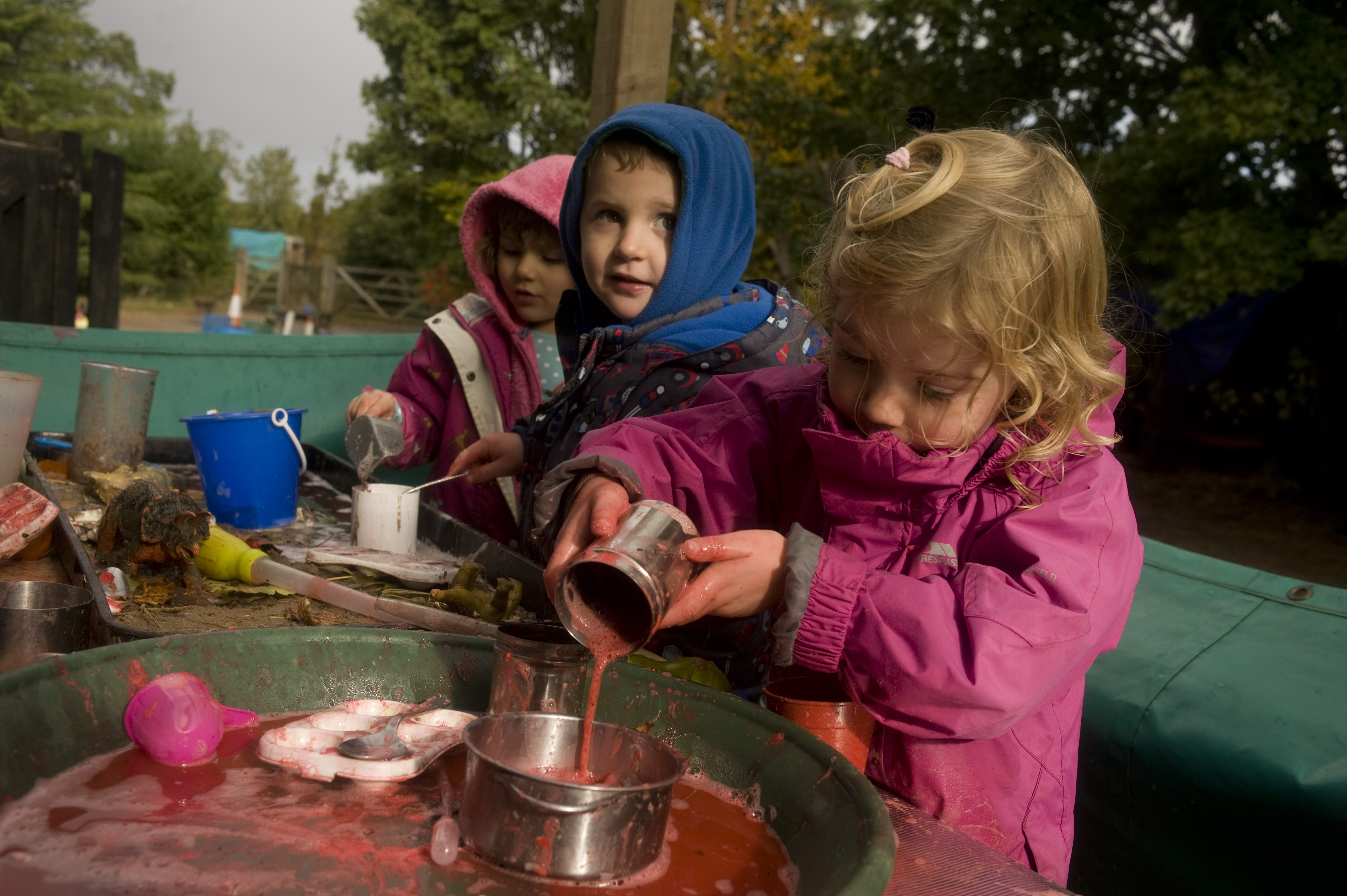 ?Si Barber/07739 472 922 Children at a private nursery playing outside with their carers.