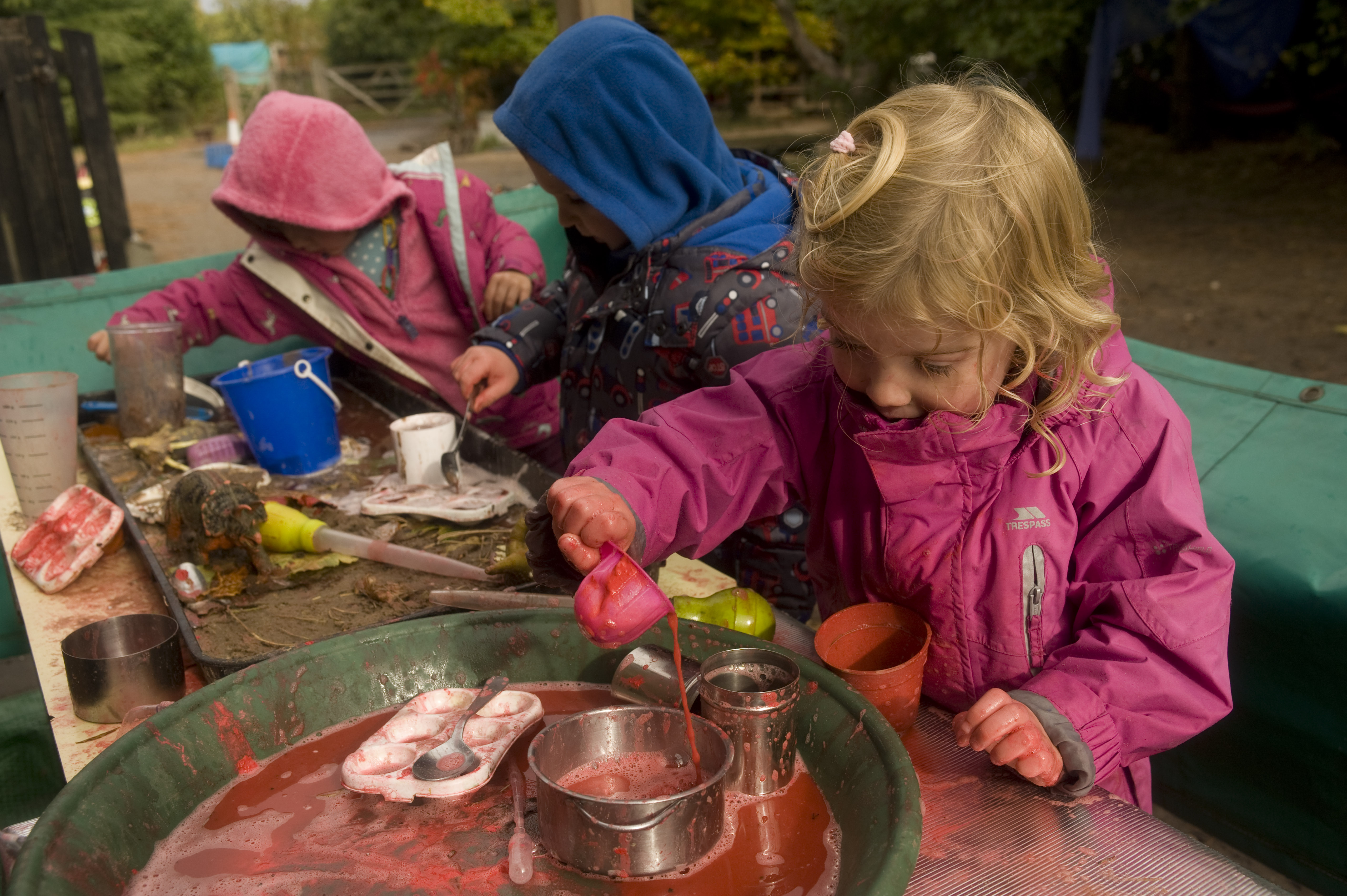 ?Si Barber/07739 472 922 Children at a private nursery playing outside with their carers.