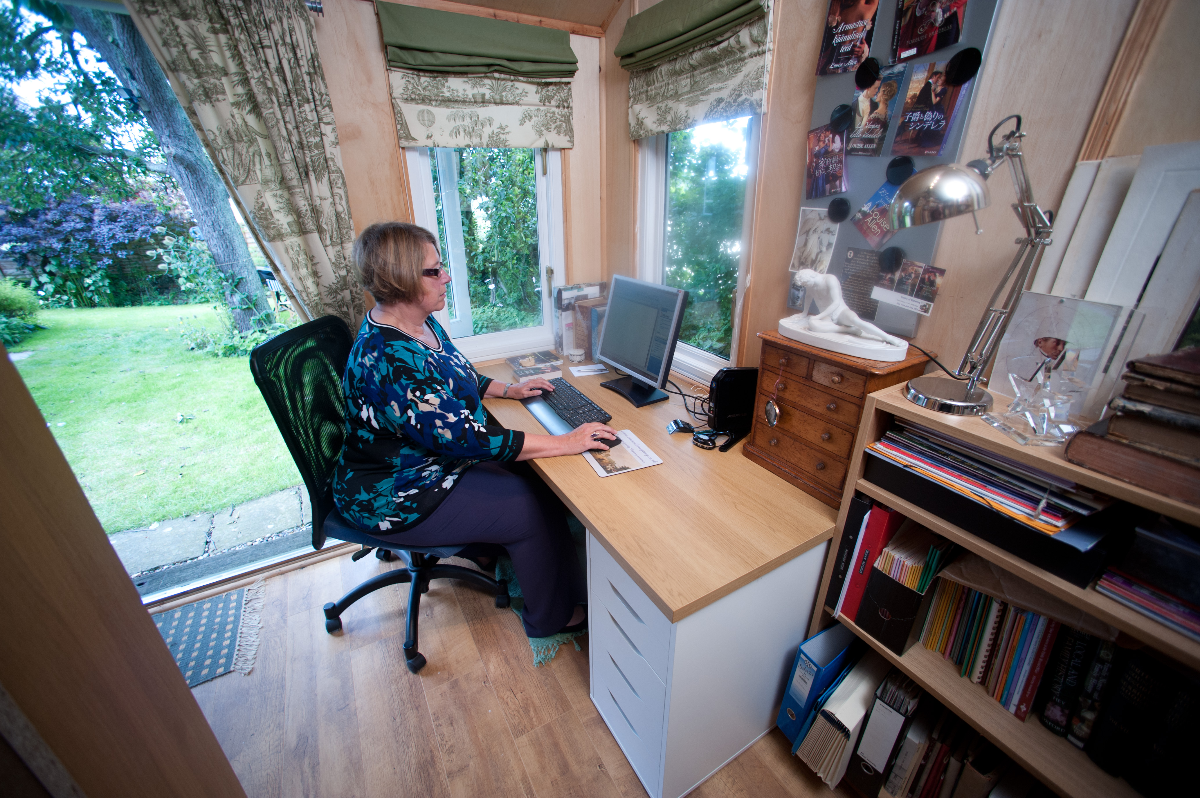 Author Louise Allen & her writing shed.