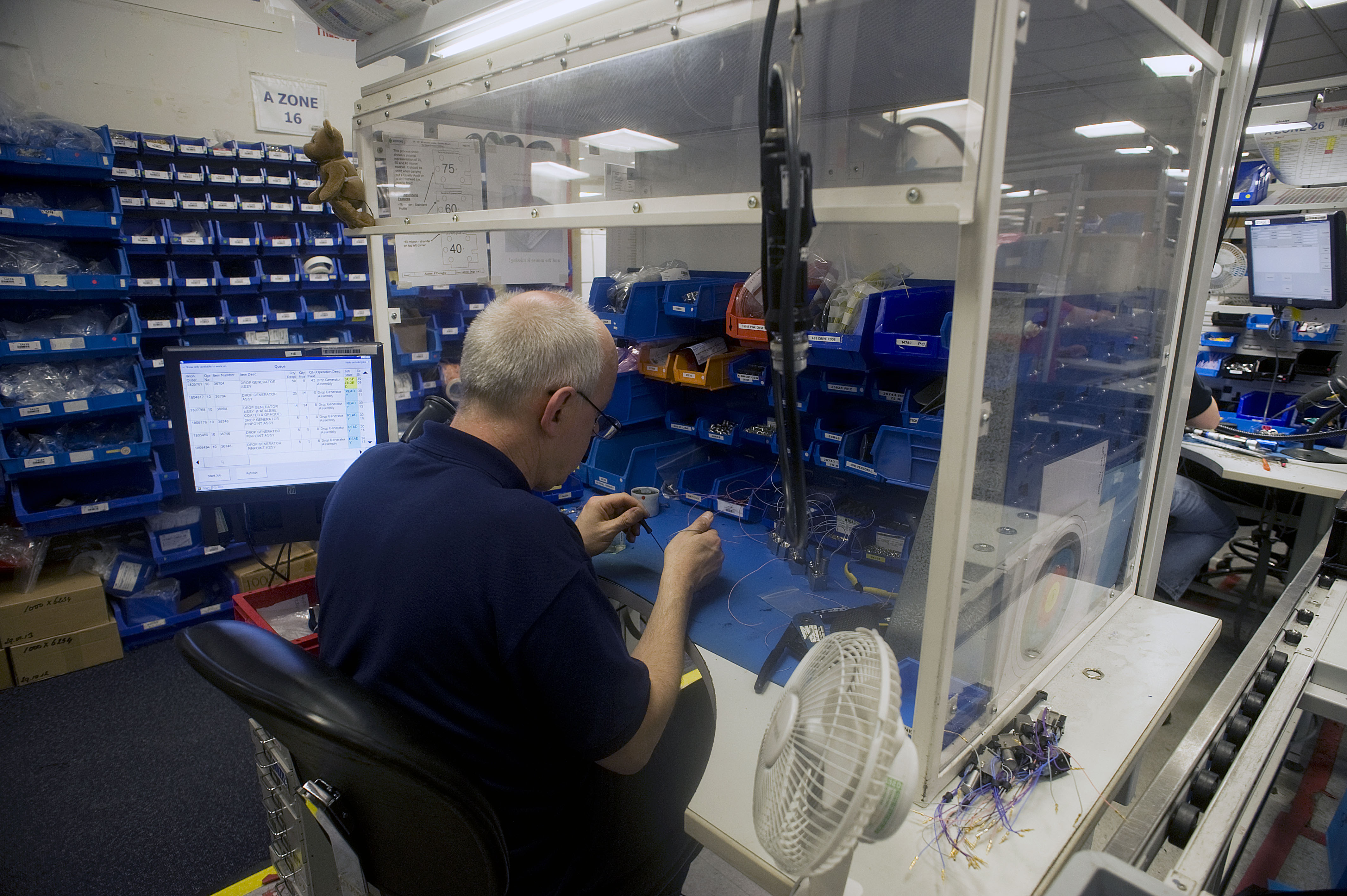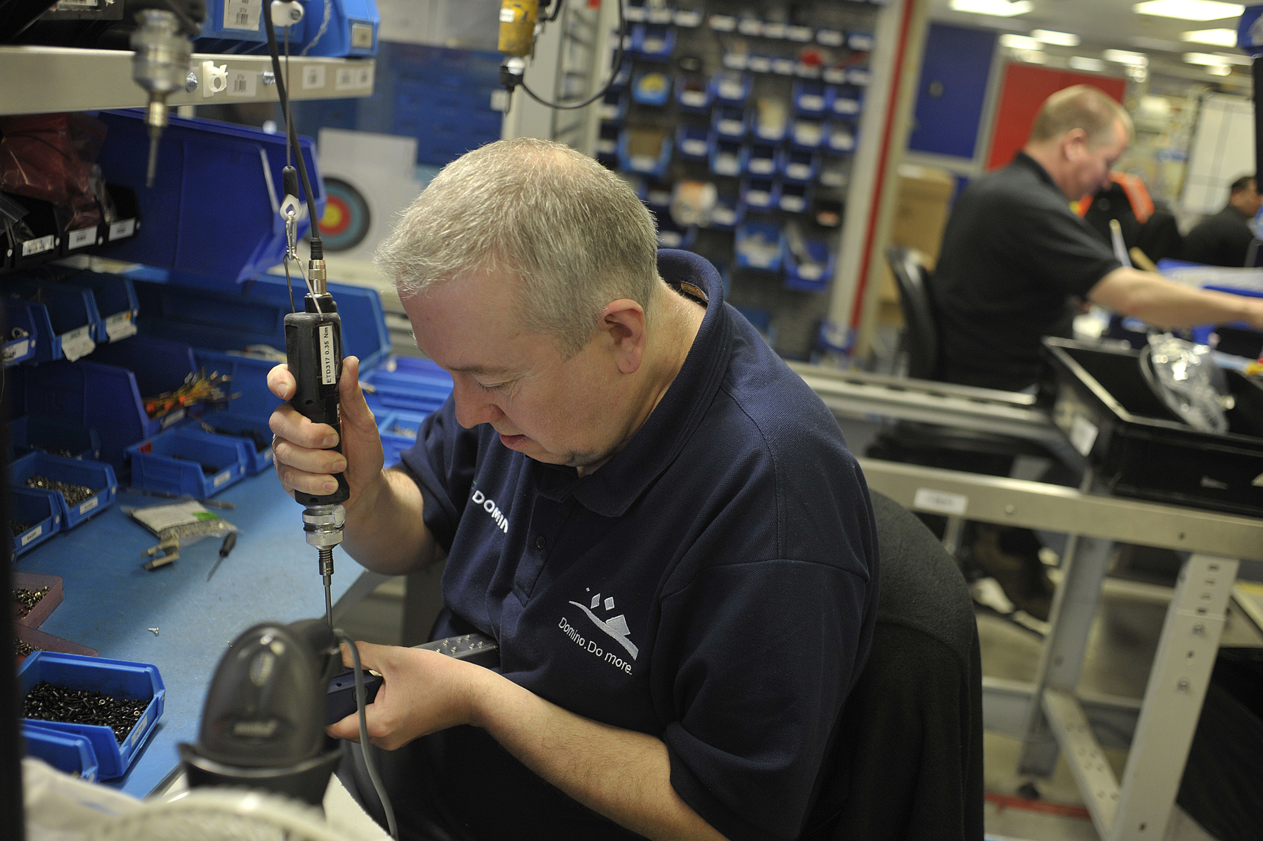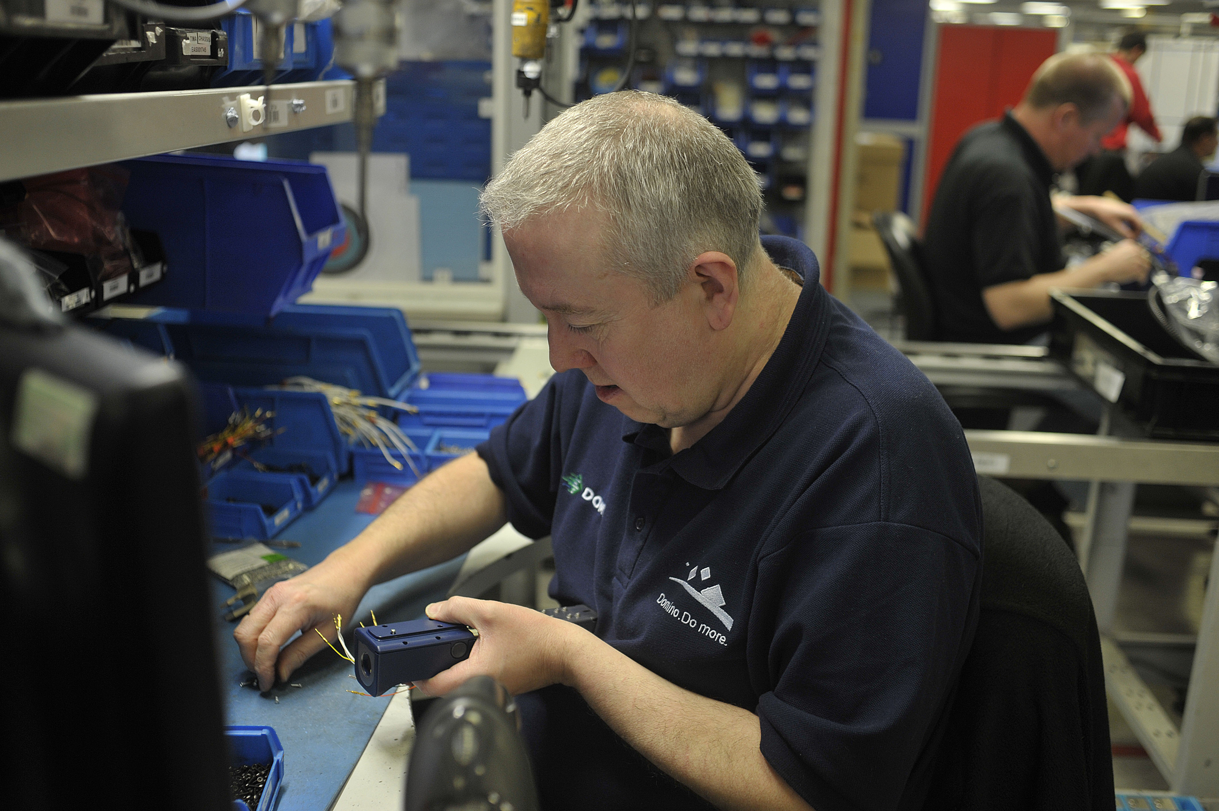 Domino Printing factory floor. Images shows: The final assembly of the print head which contains 32 sapphires.