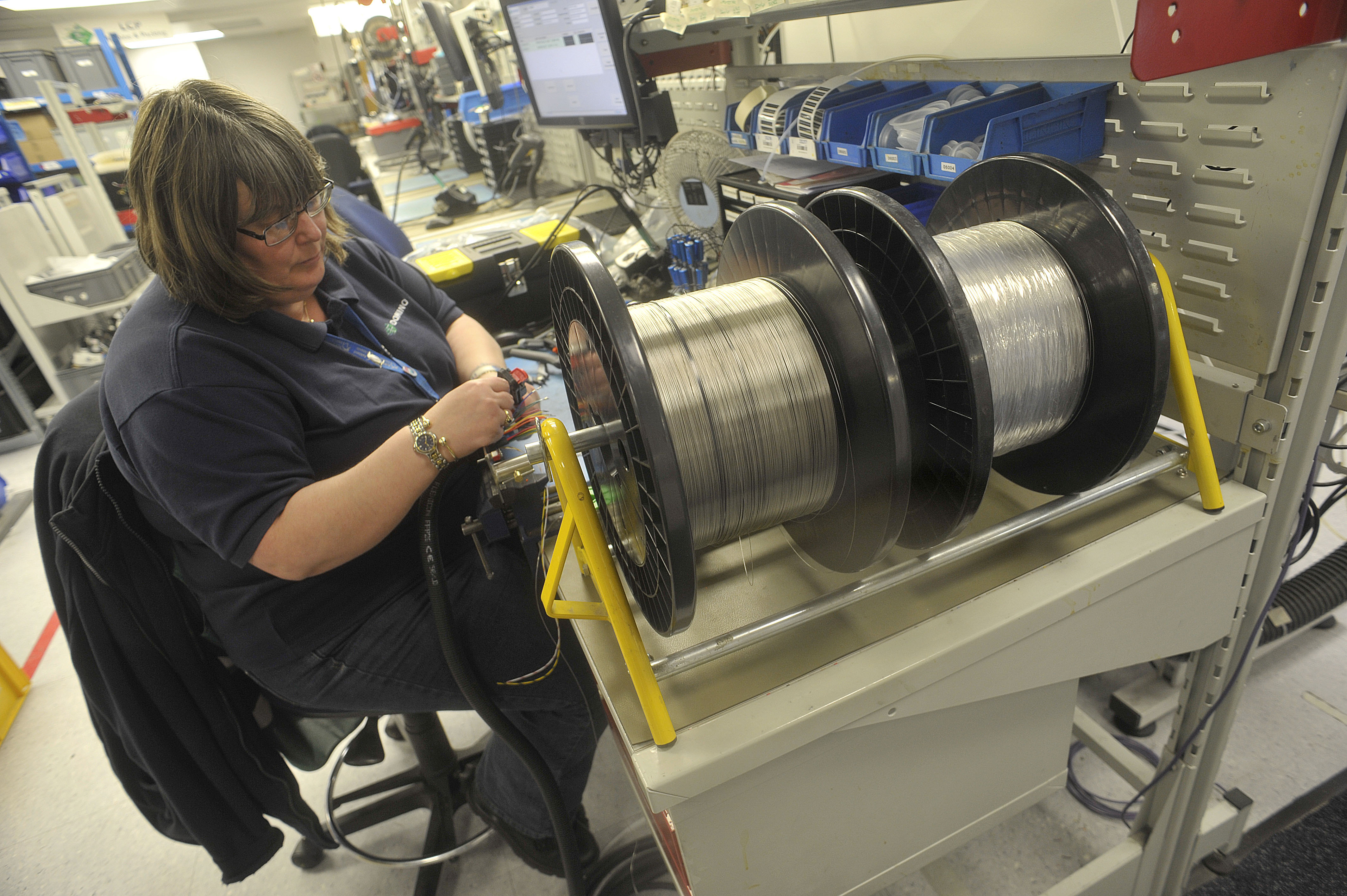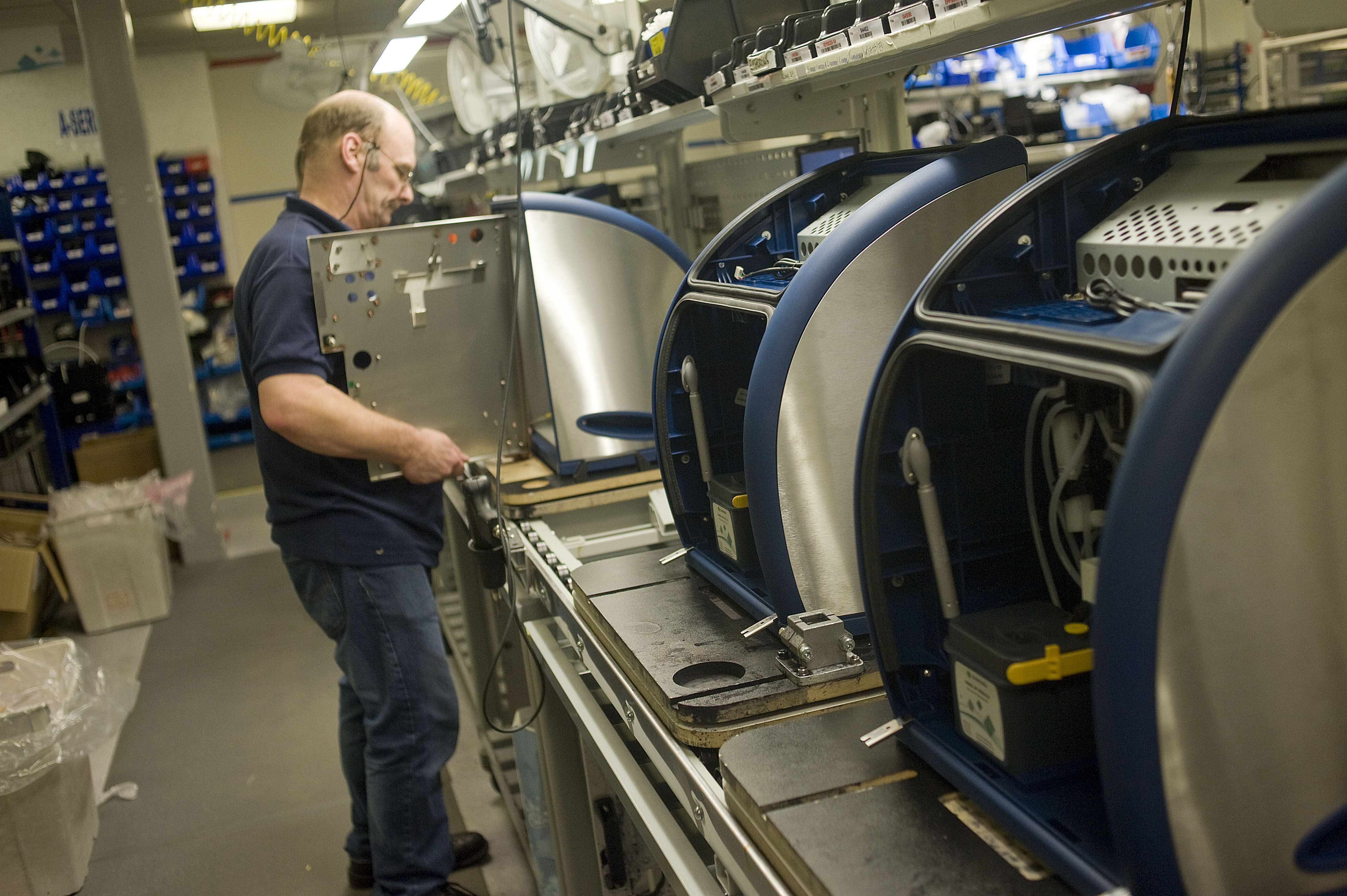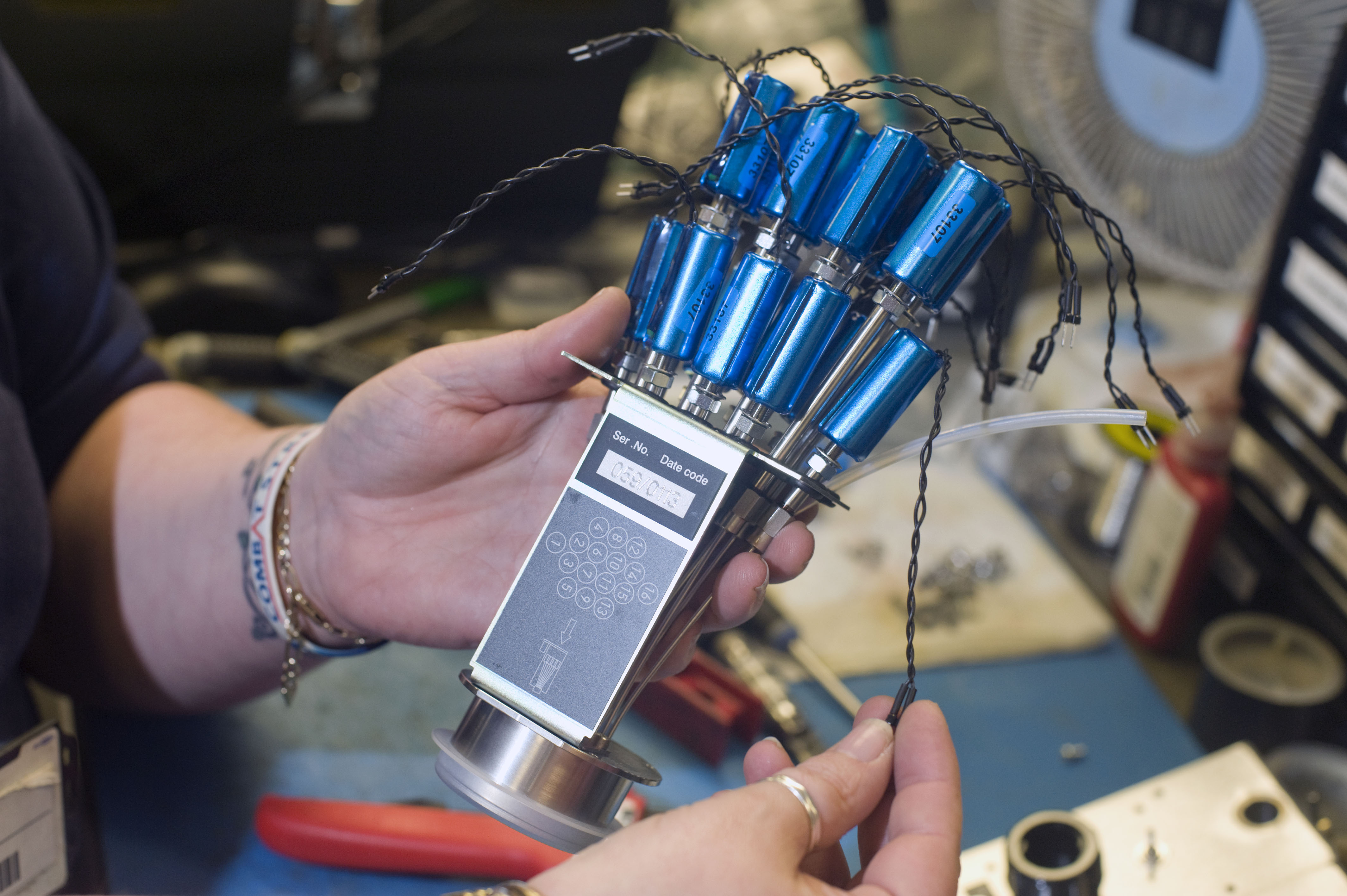 Domino Printing factory floor. Images shows: The final assembly of the print head which contains 32 sapphires.