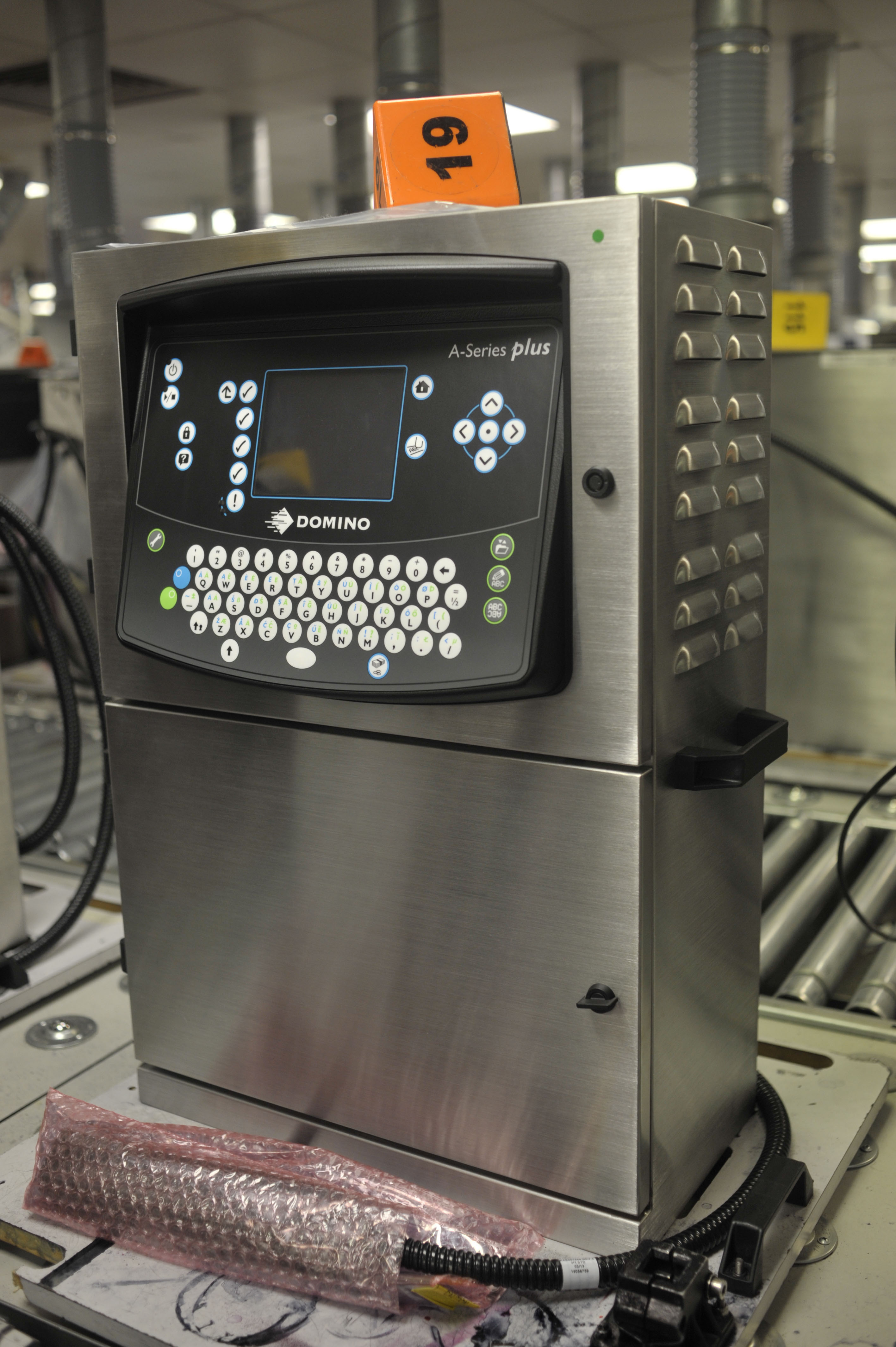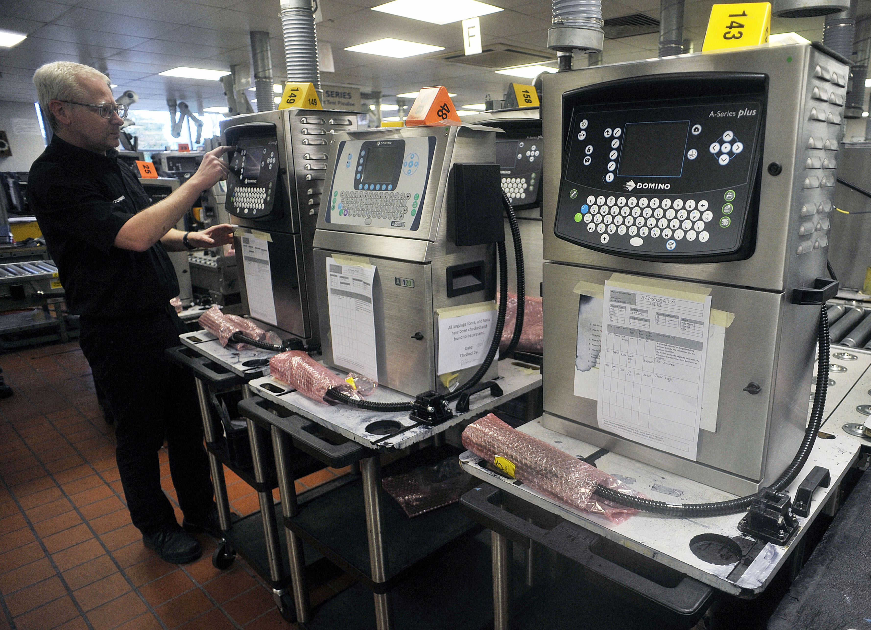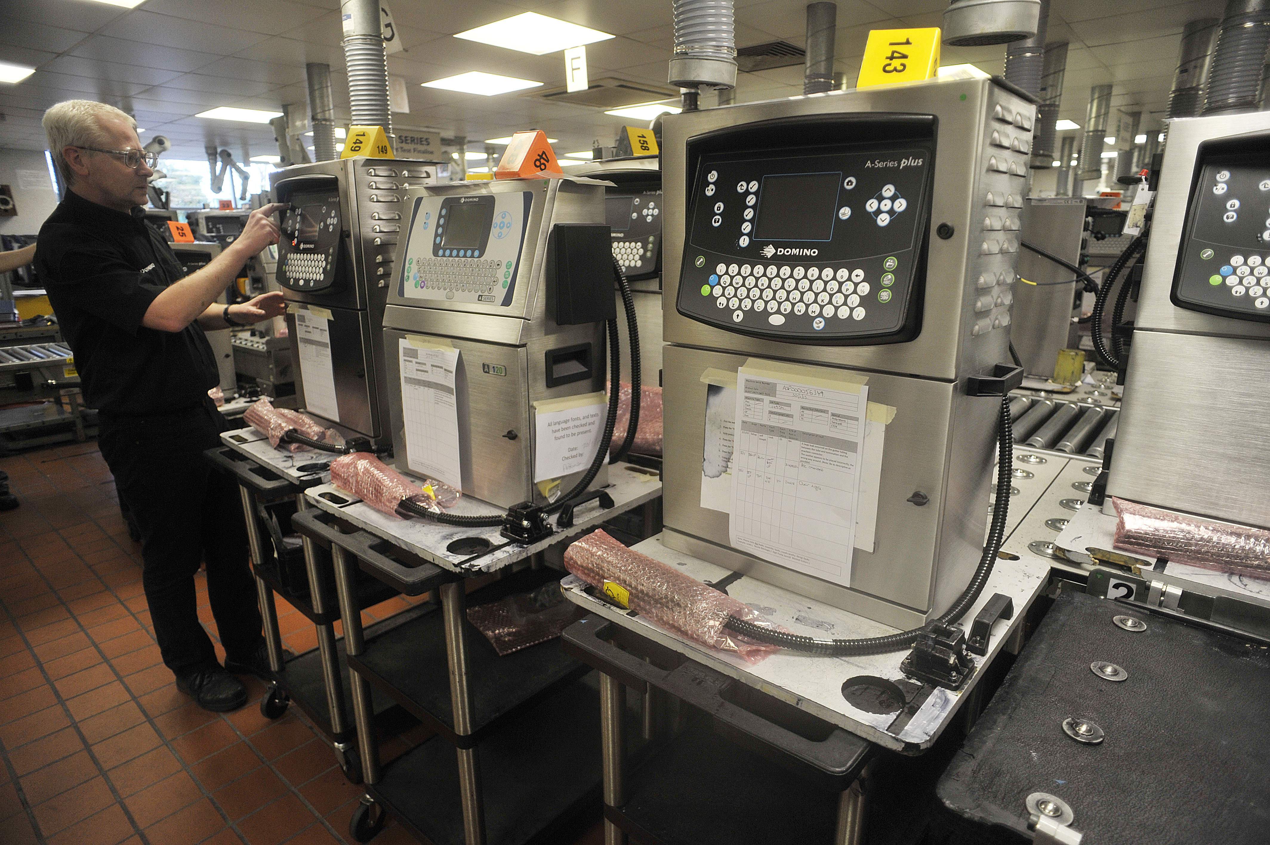 Domino Printing factory floor. Image shows: The completed Macrojet which is robust enough to undertake labelling on board ocean going ships..