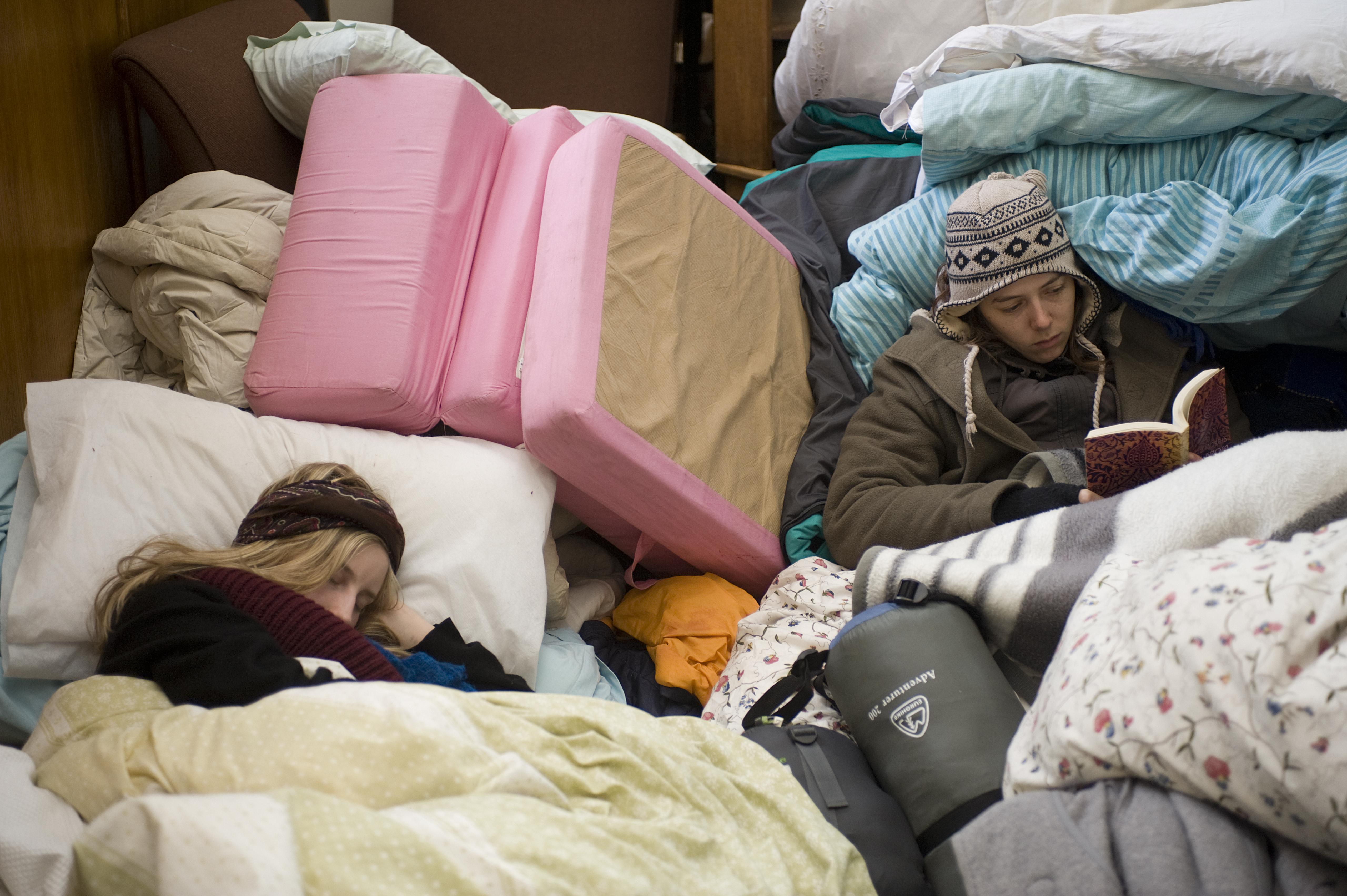 Students in the Senate House building in Cambridge barricade themselves in as they prepare for the fourth night of occupation as they oppose the education cuts. 30112010