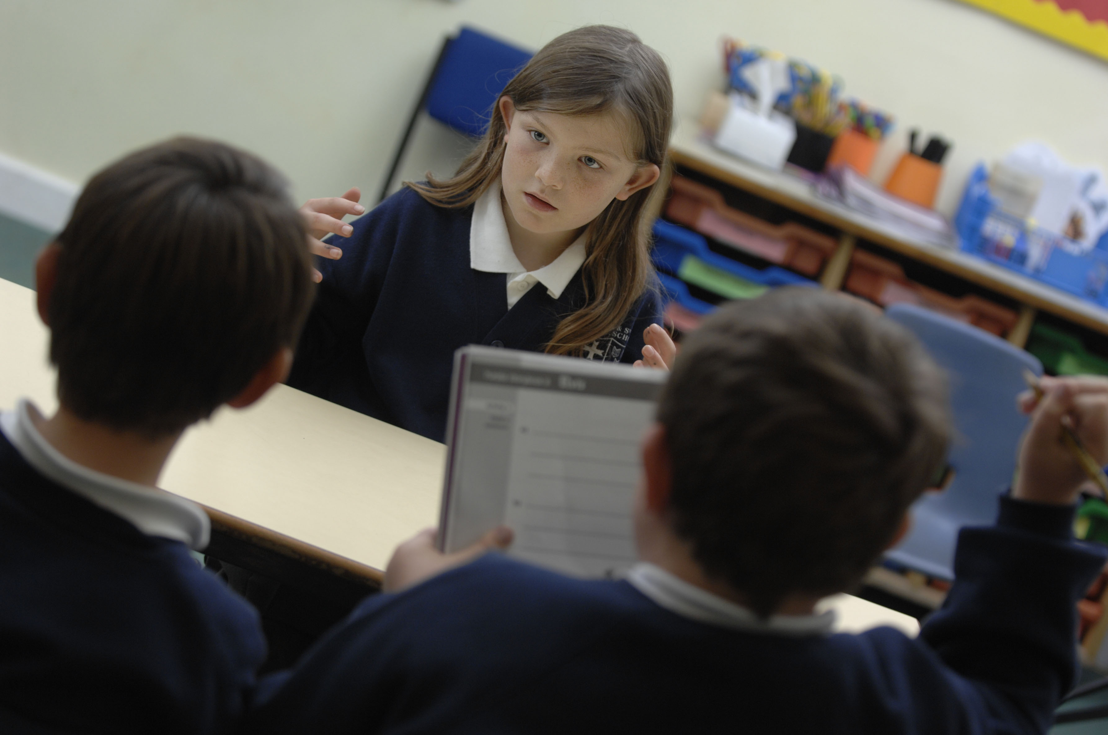 PHOTOGRAPHER - Si Barber 07739 472 922 COMMISSIONED 300908 -CHARLOTTE MAGUIRE Children of St Peter and St Paul primary school, Carbrooke,Norfolk interviewing and testing their classmates as they take over the school for a day and appoint their own teachers. Pic shows Reya being interviewed by a panel.