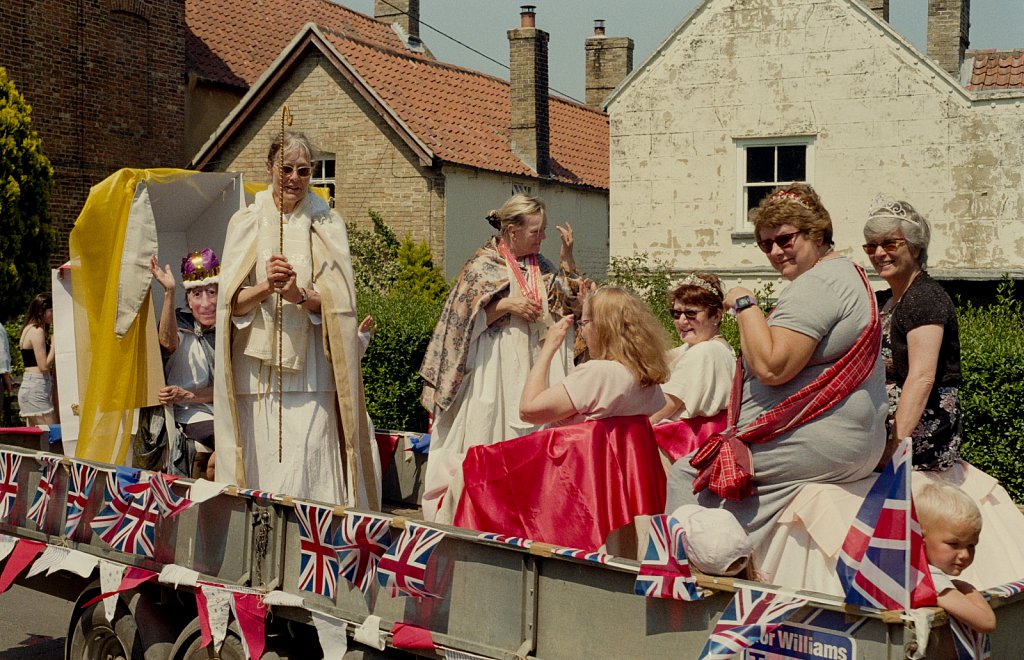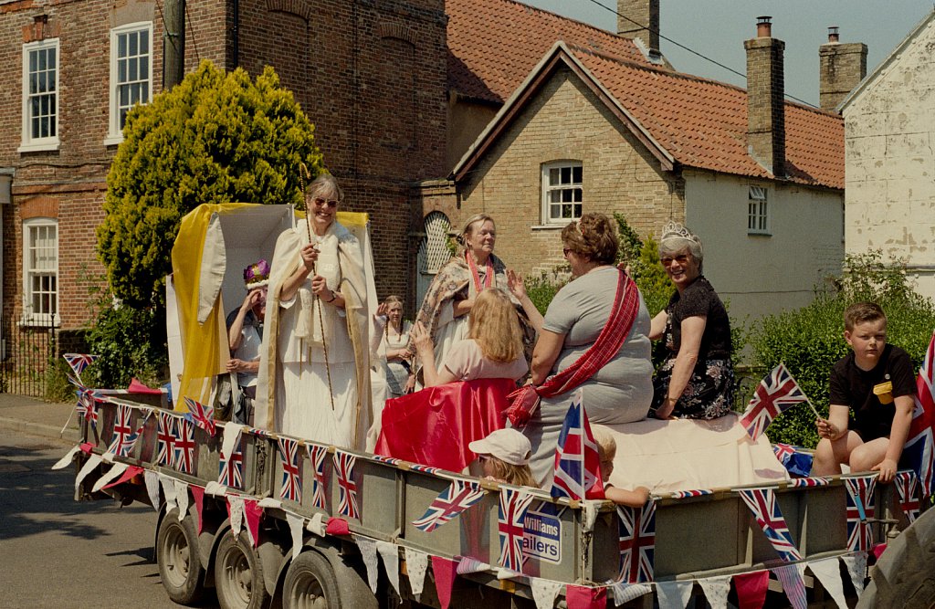 Burnham Market carnival parade makes it way around the village. The theme for 2022 was the Jubilee.