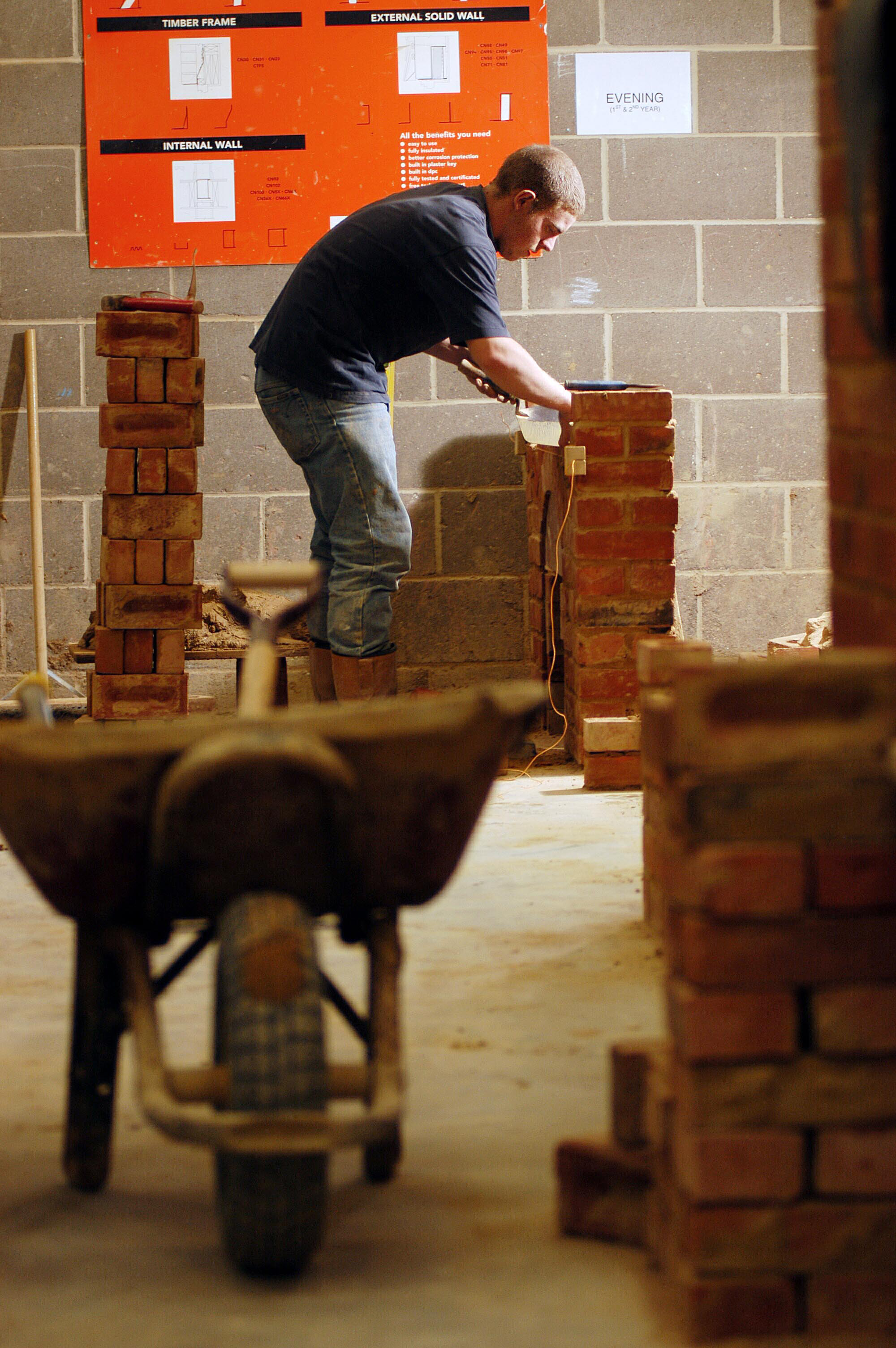 Mandatory Credit: ? Si Barber/07739 472 922 Apprentice bricklayers learning their trade