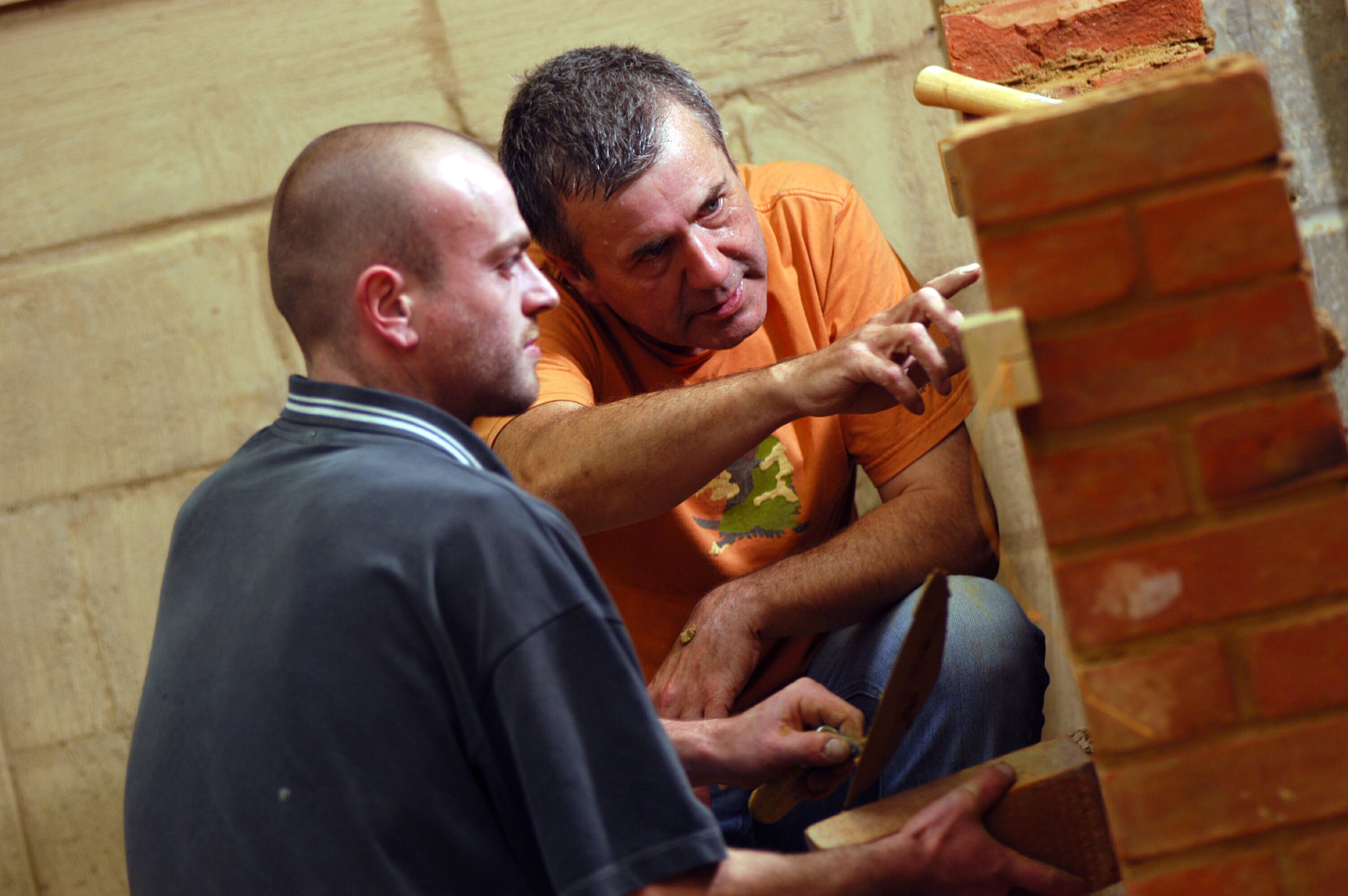 Mandatory Credit: ? Si Barber/07739 472 922 Apprentice bricklayers learning their trade