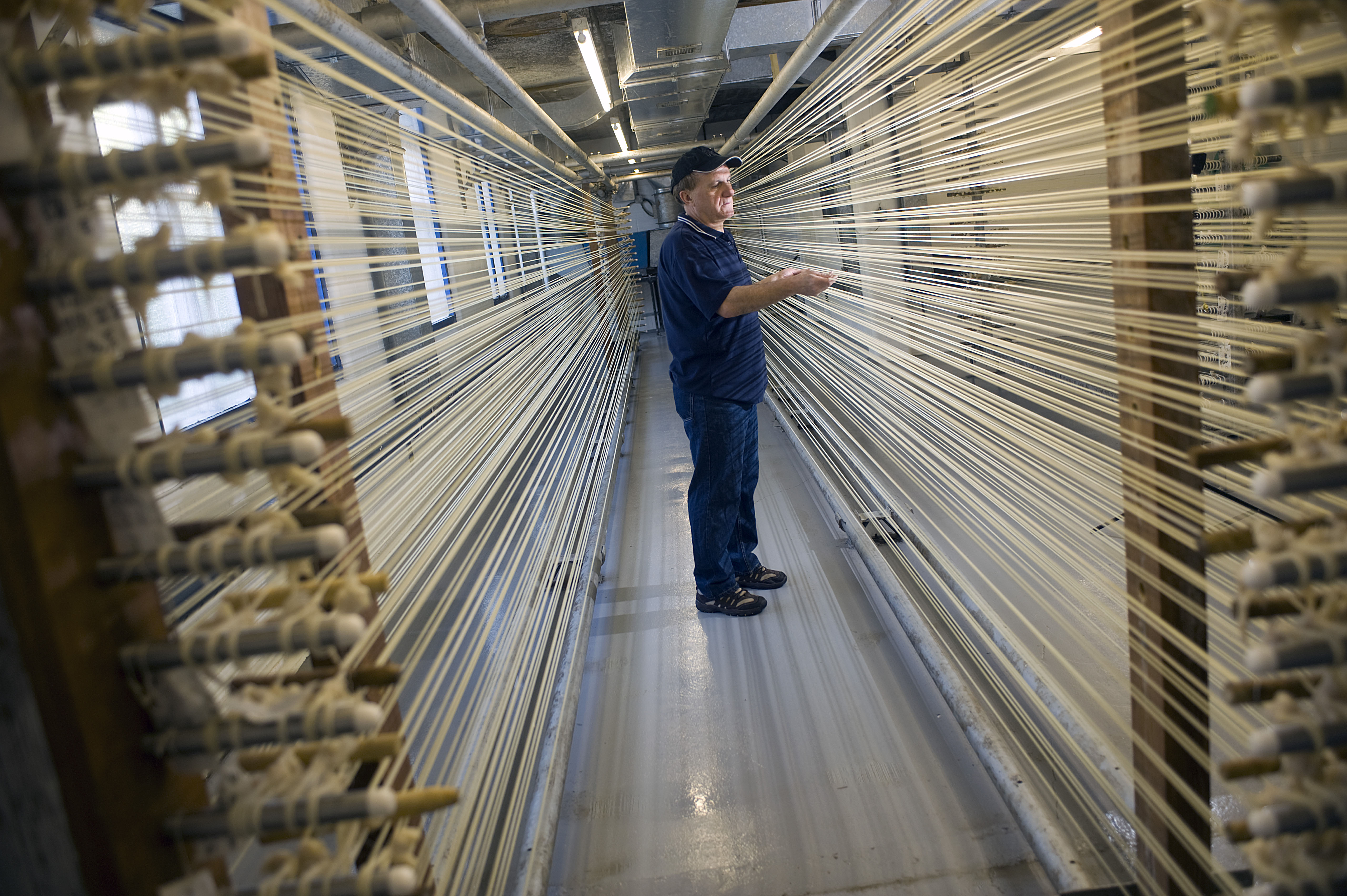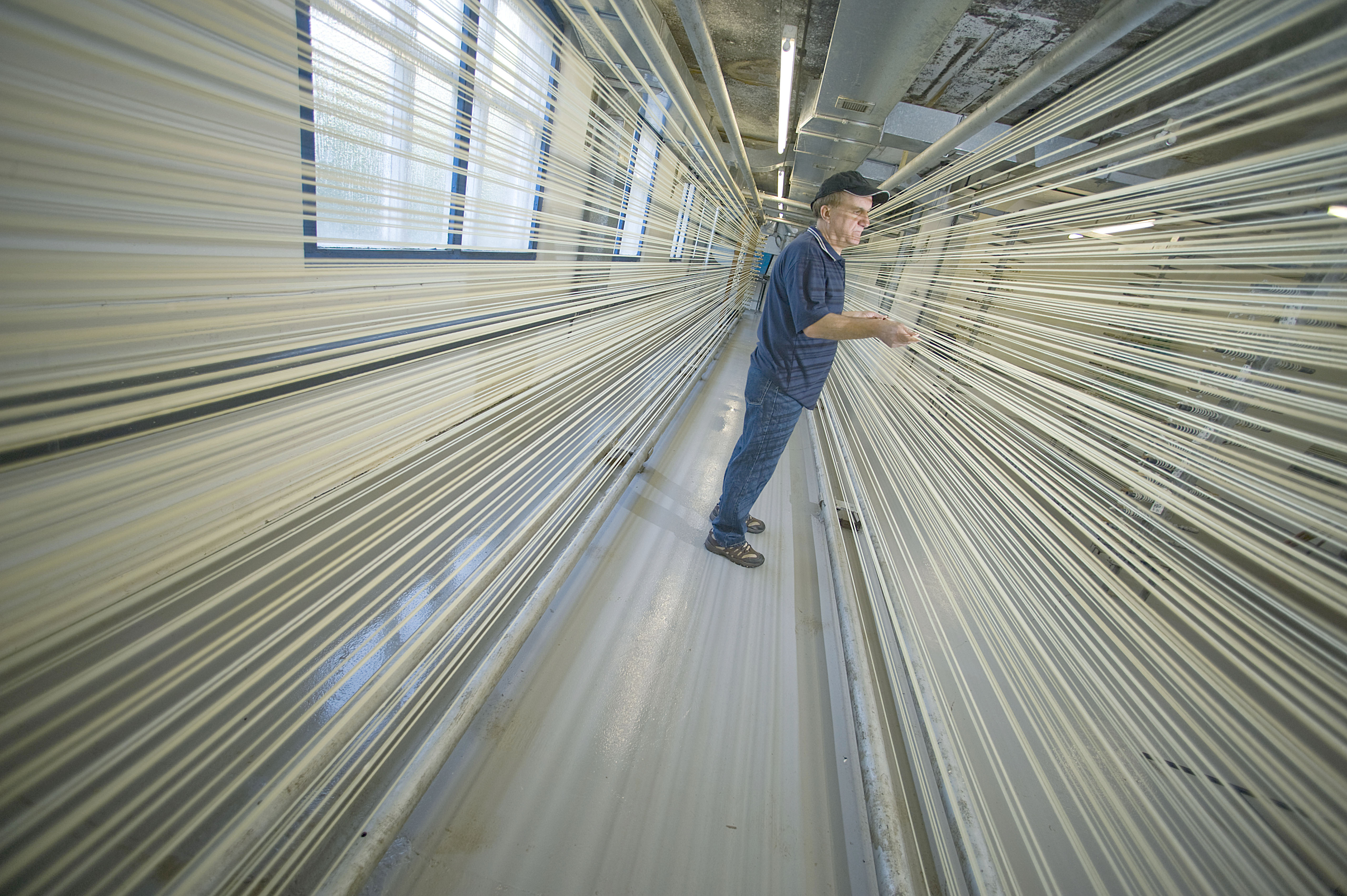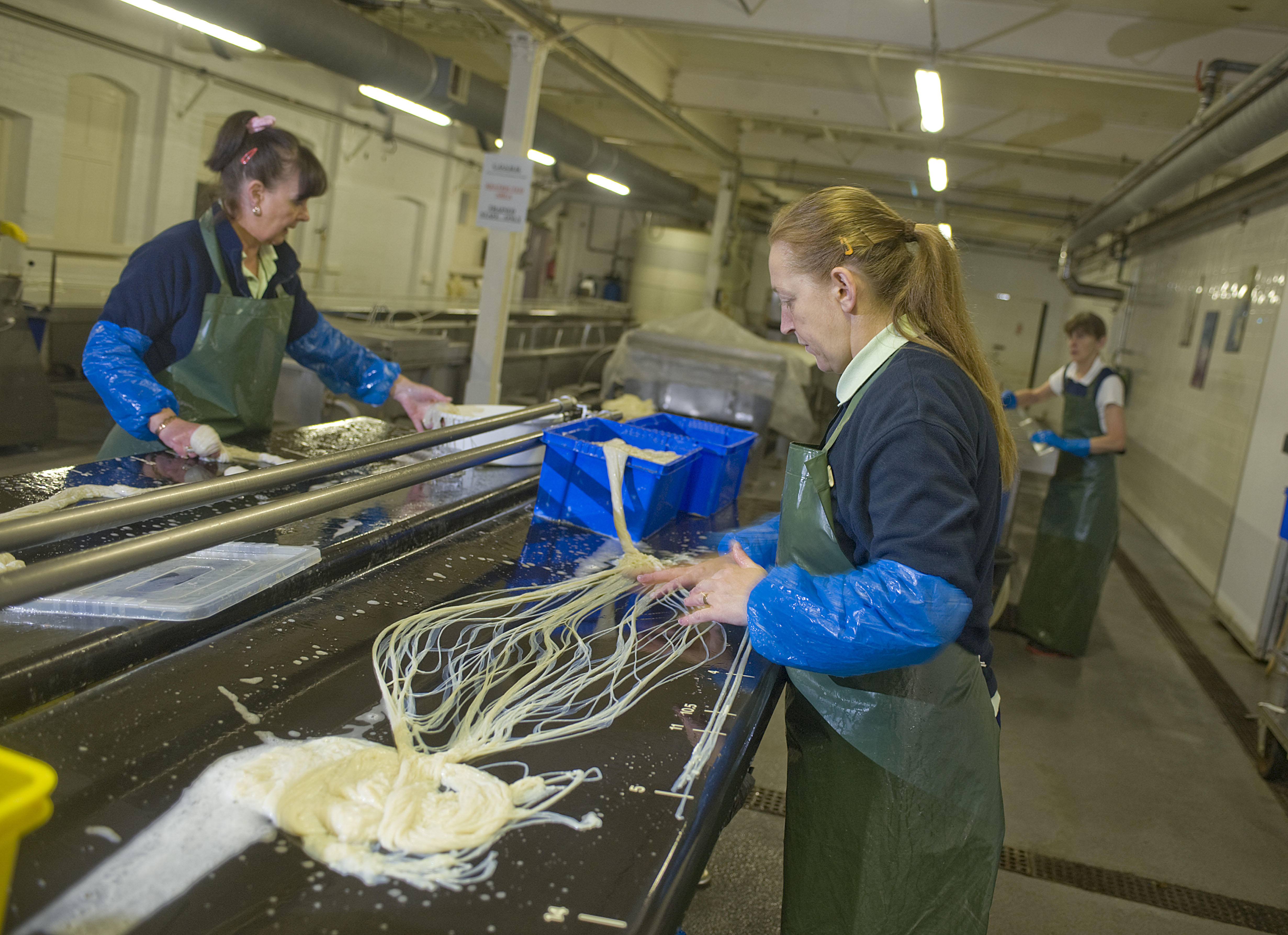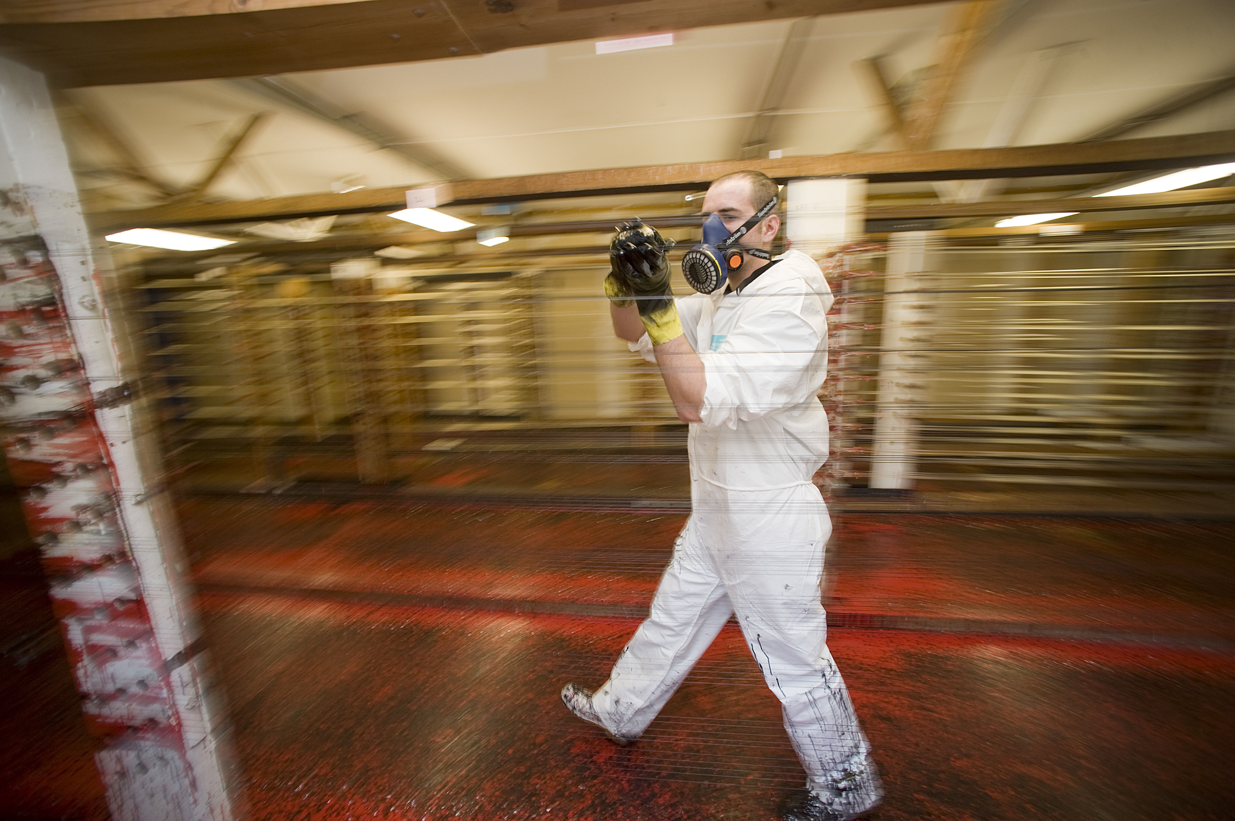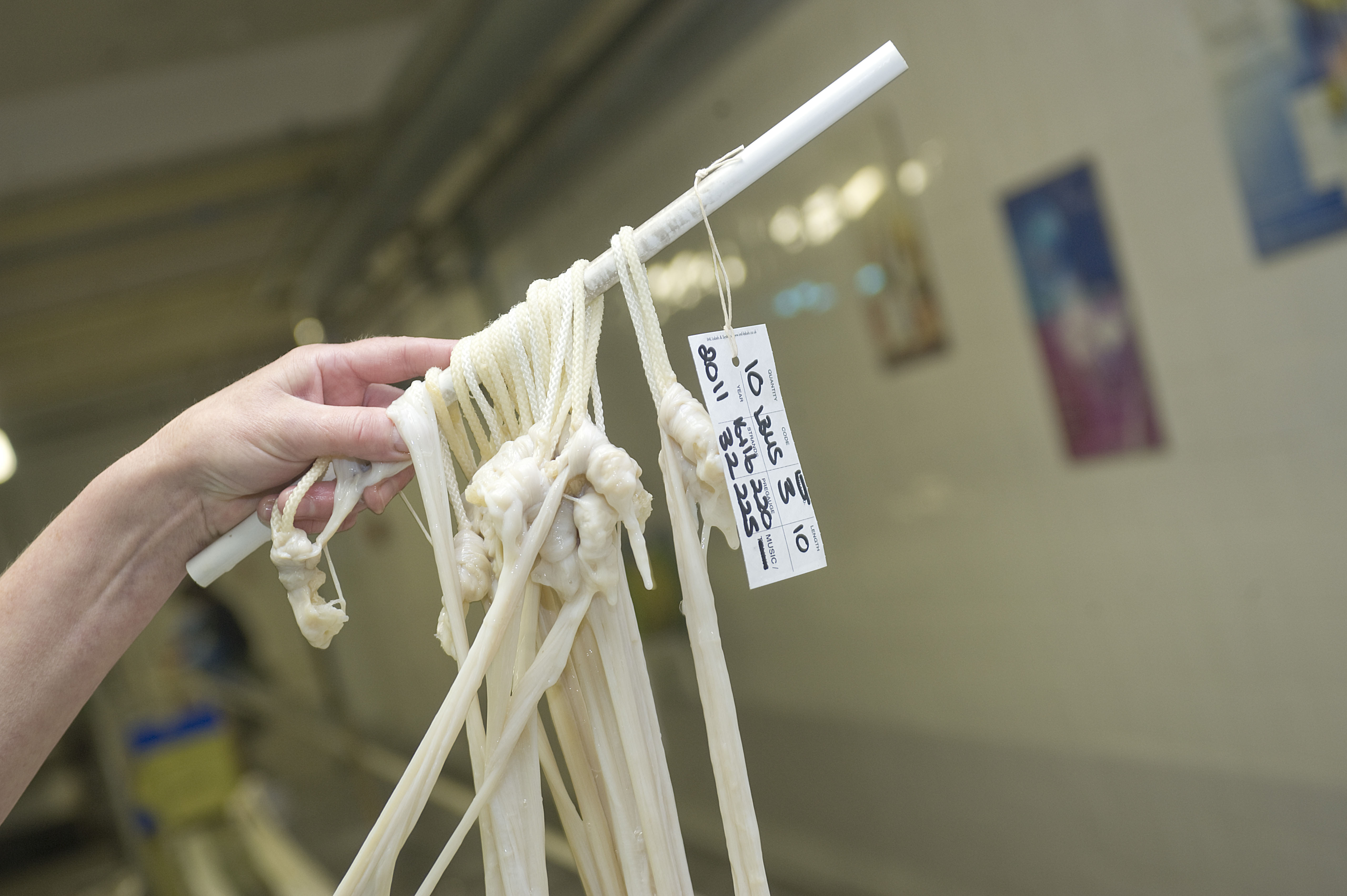 Bow Brand workers processing cow gut for transformation into strings for musical instruments, 2011.