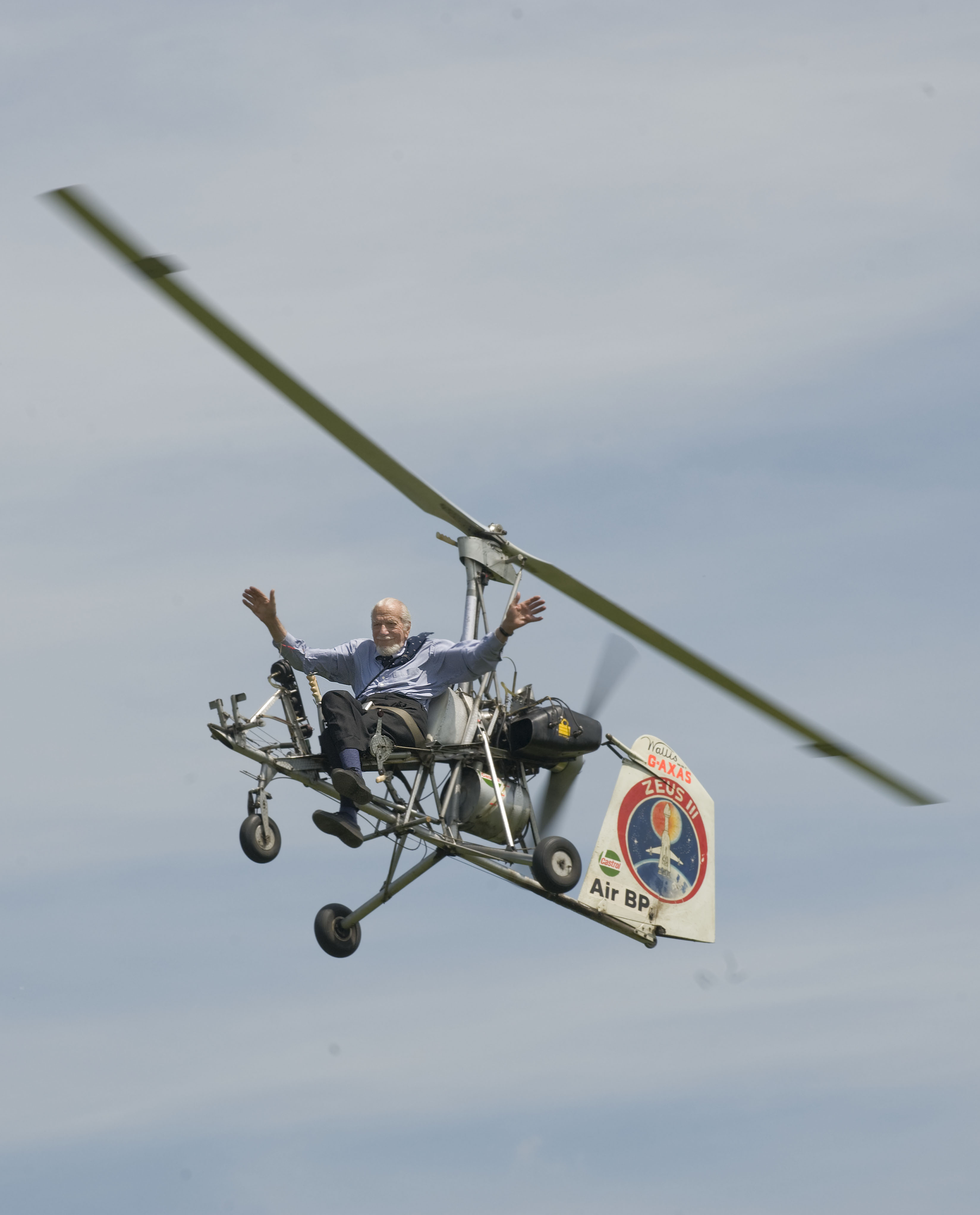 Wing Commander Ken Wallis MBE. The 94 year old former bomber pilot is attempting to break the autogyro speed record by reaching 140mph in his hand-built aircraft. 23062010