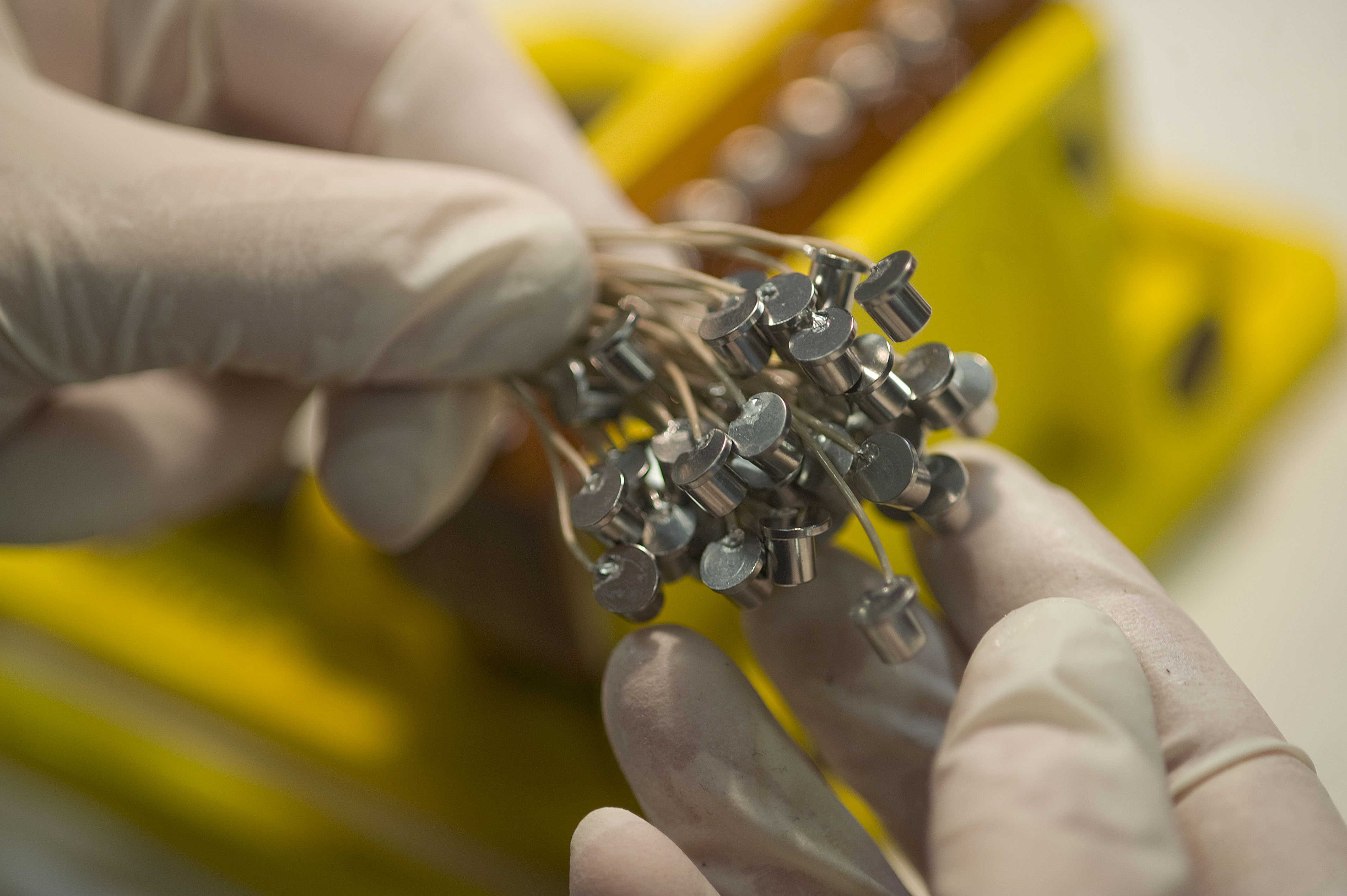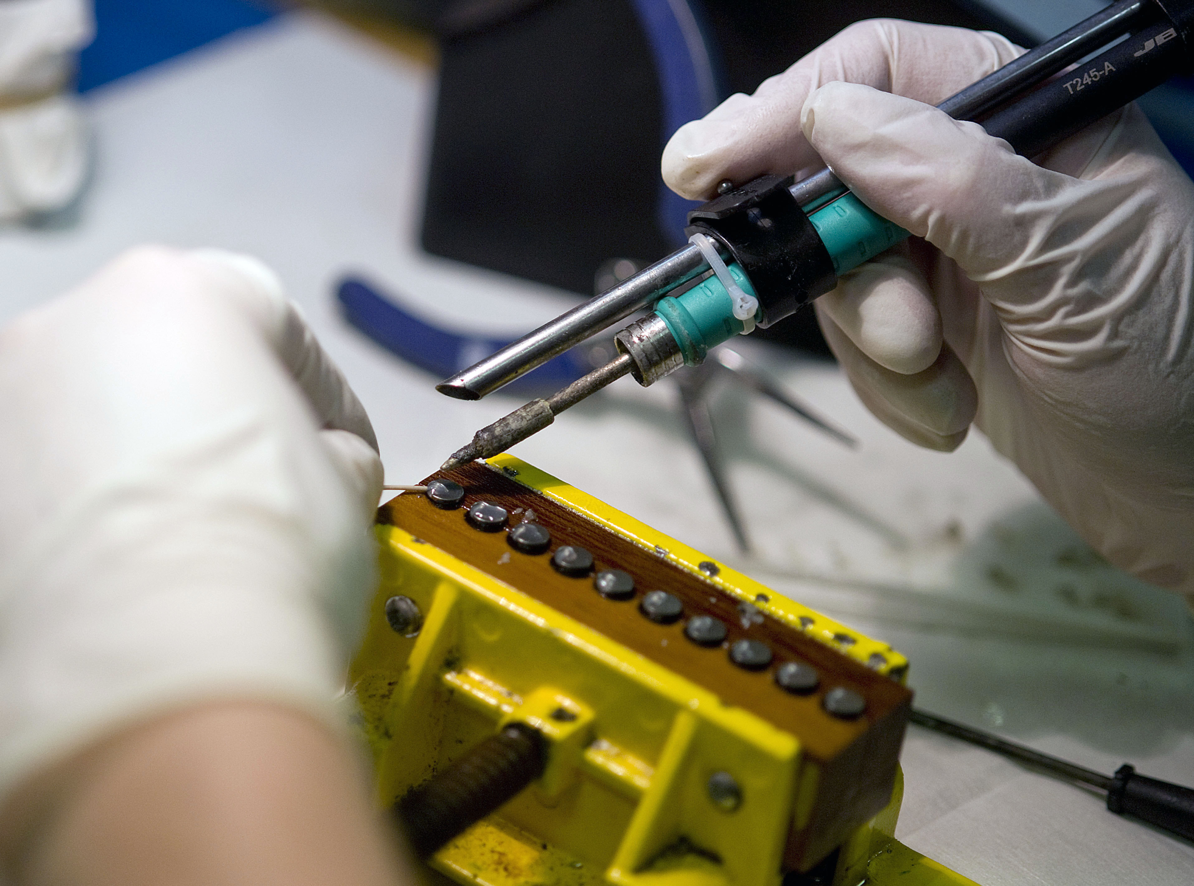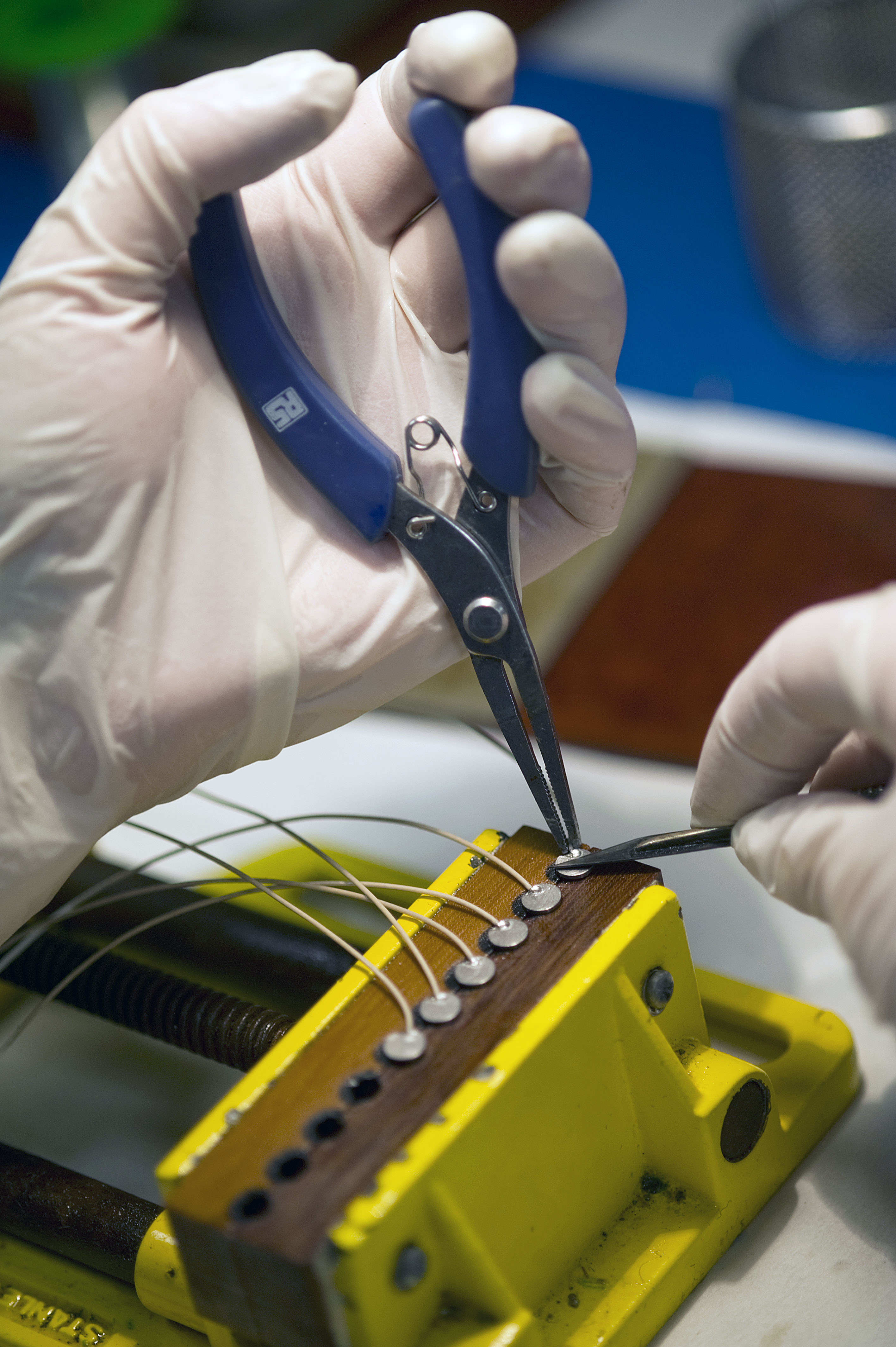 Domino Printing factory floor. Images shows: Assembling and testing the drive rods for the printer heads.