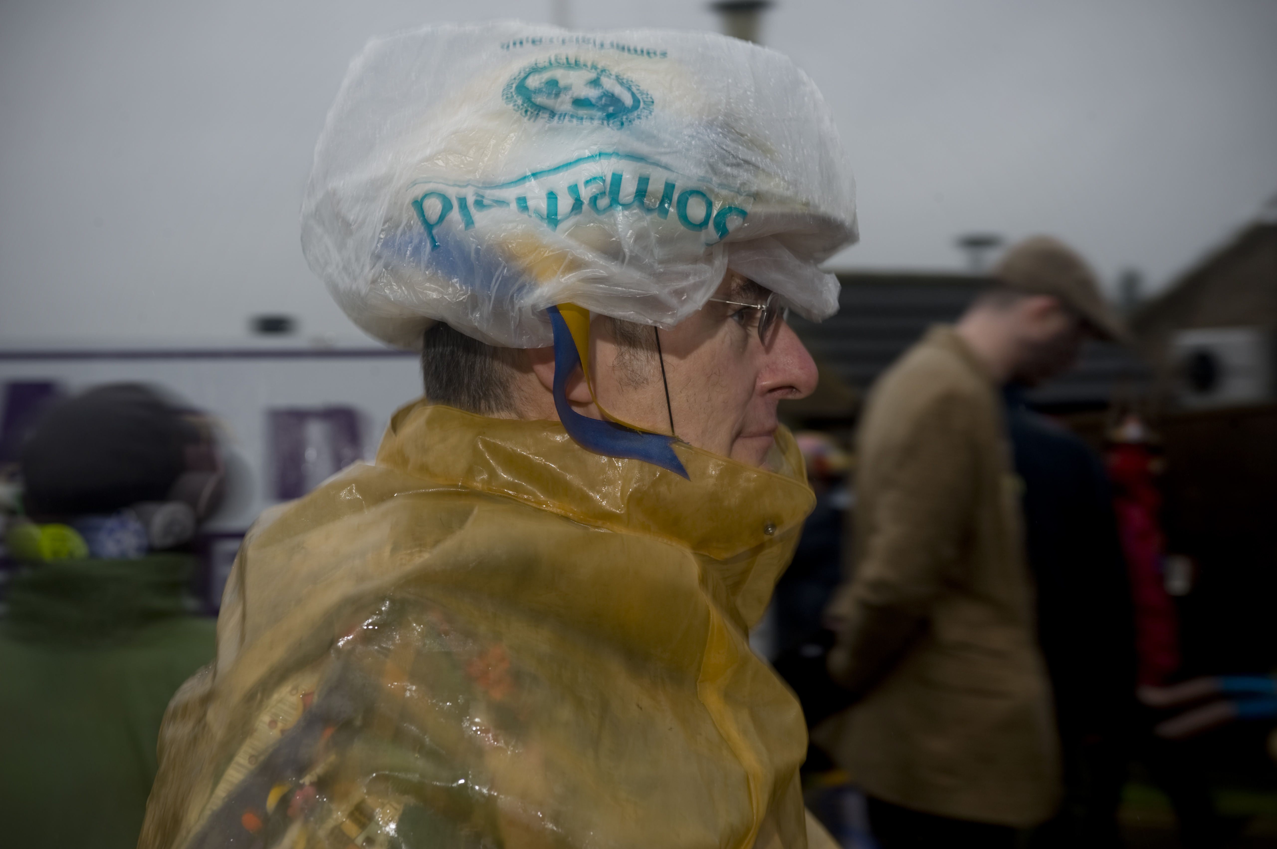 ? Si Barber 07739 472 922 Molly and Morris dancers parading through the town of Whittlesea in Cambs in celebration of Plough Monday - a Medieval tradition in which unemployed agricultural labourers begged for alms. Participants went in disguise to avoid prosecution from the authorities and caused mischief for those who would not pay them. 170110.Picture shows a Morris Dancer waiting in the rain. 170110.